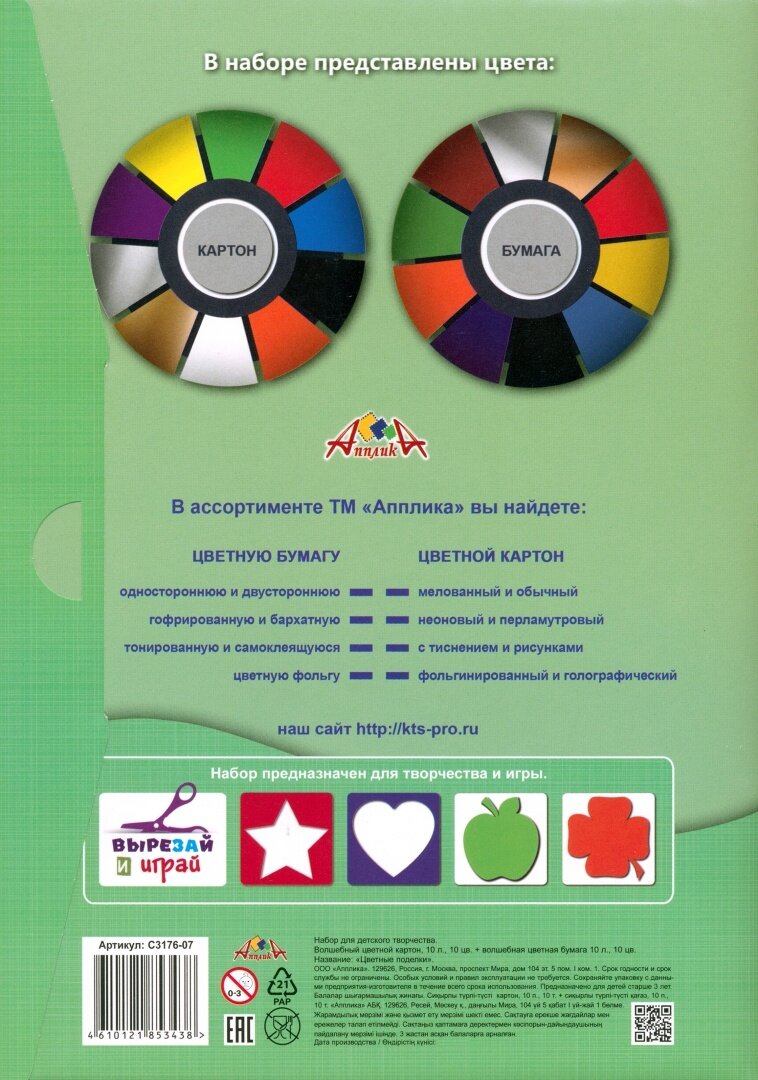 Цветные картон и бумага Апплика "Поделки", А4, по 10 листов и 10 цветов, в папке (С3176-07) интересное: