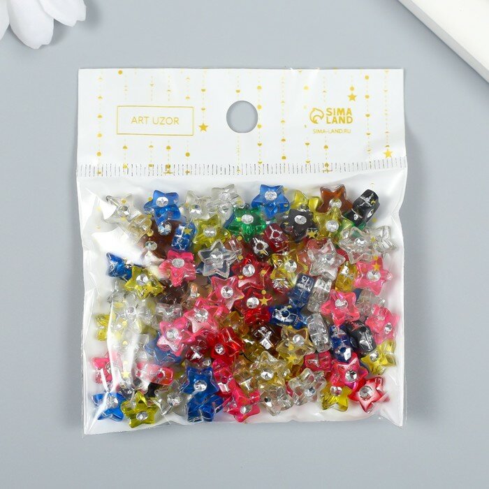 Купить Набор бусин для творчества пластик "Звёздочка со стразой" 0,4х1х1 см 20 гр
