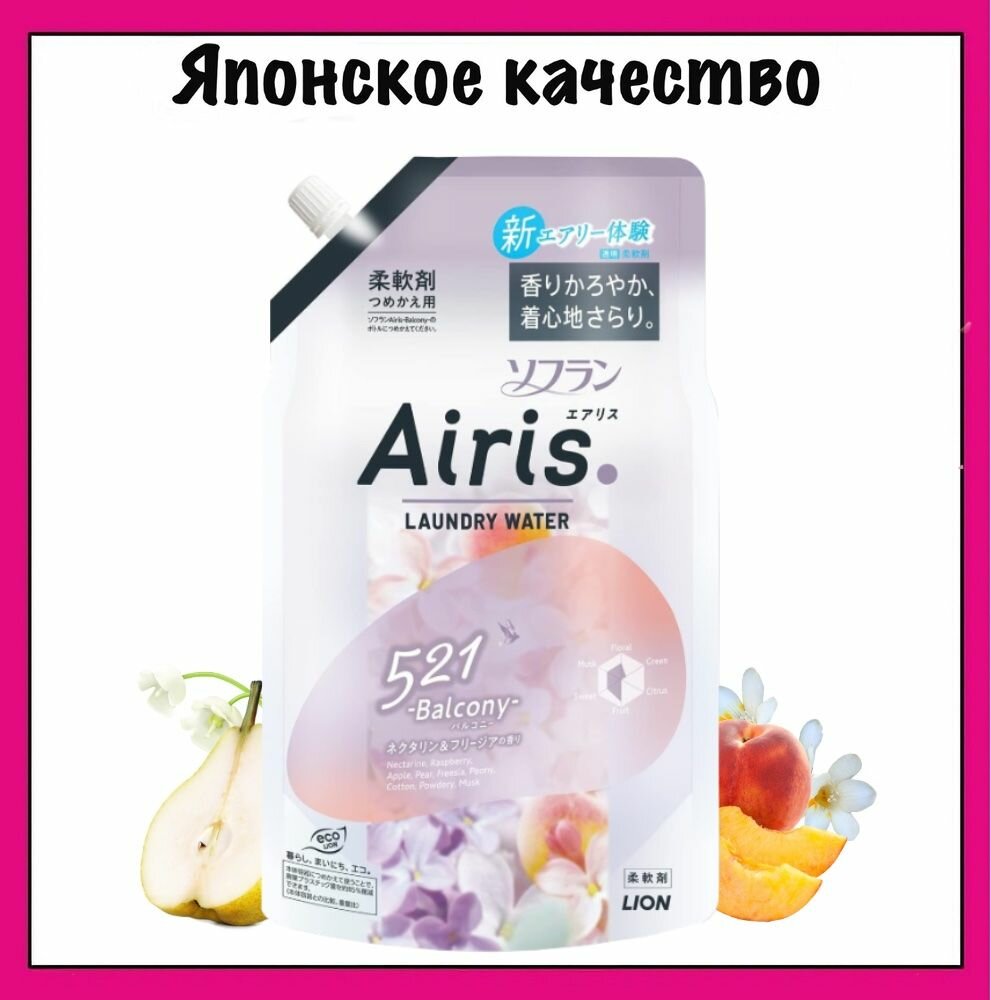 Lion Airis 521 Японский кондиционер с ароматом нектарина, груши, фрезии и ландыша, Balcony, 480 мл.