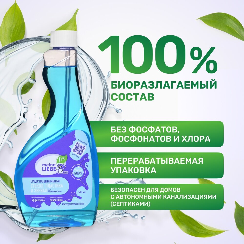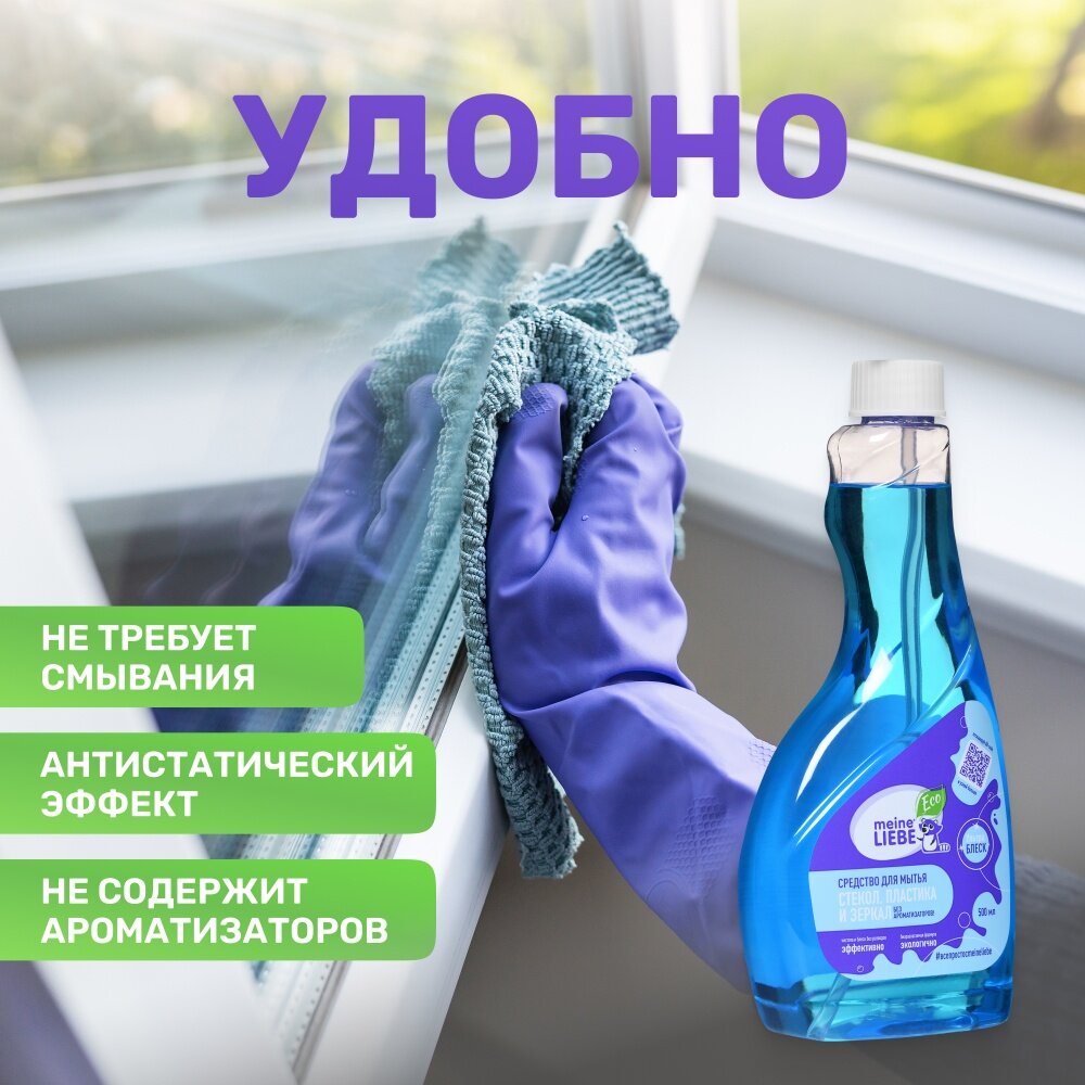 MEINE LIEBE Средство для мытья стекол, пластика и зеркал , сменная бутылка 500 мл интересное: