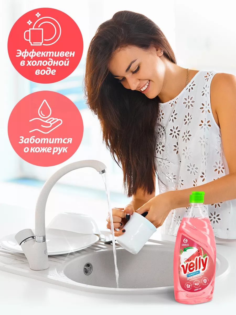 Купить Средство для мытья посуды Grass Velly Sensitive Арбуз, 1 л
