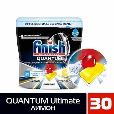 Капсулы для посудомоечных машин Finish Ultimate с ароматом Лимон бесфосфатные, 30 шт