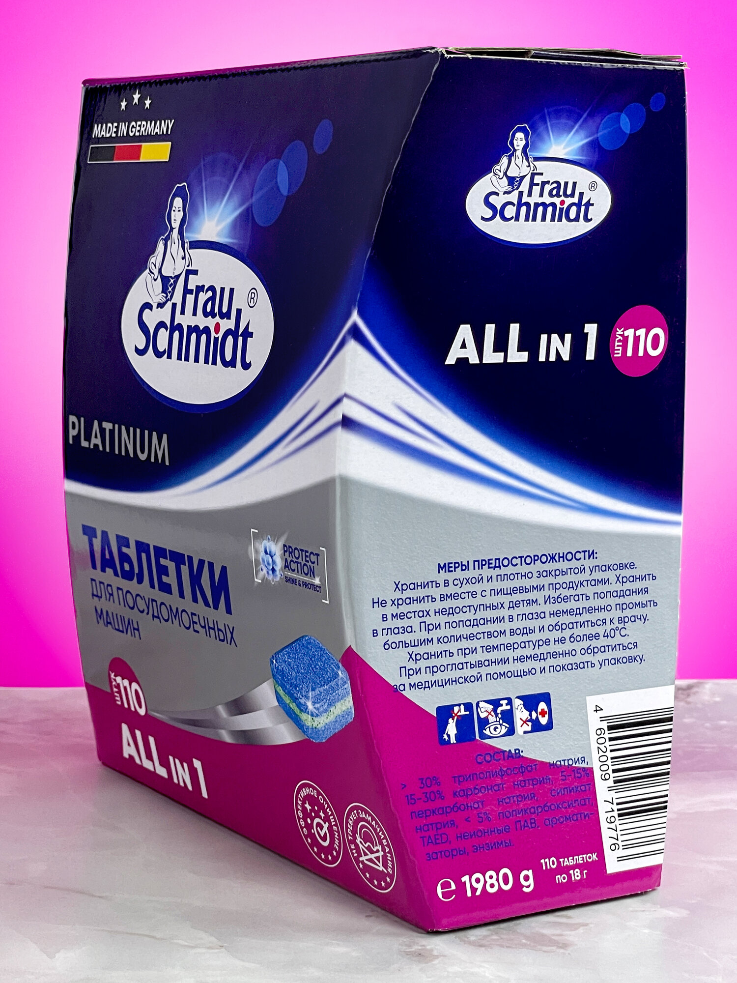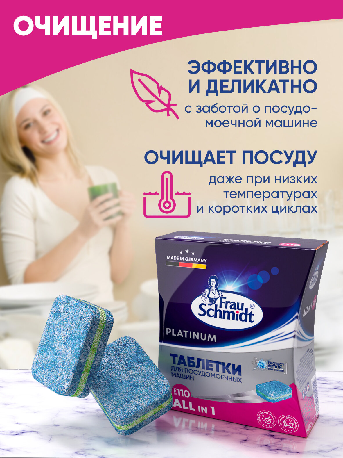 Таблетки для посудомоечной машины Frau Schmidt Platinum. Средство для мытья посуды 110 таблеток