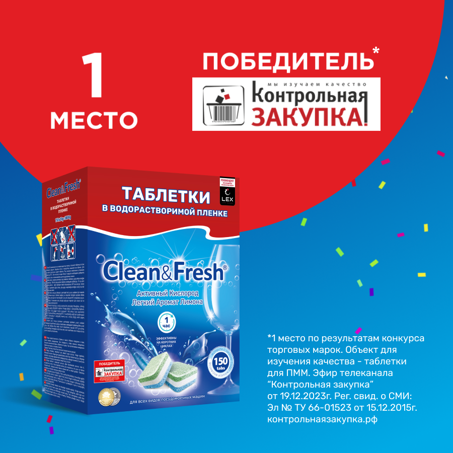 Таблетки для посудомоечных машин Clean & Fresh CLEAN&FRESH, в водорастворимой пленке, 150 шт