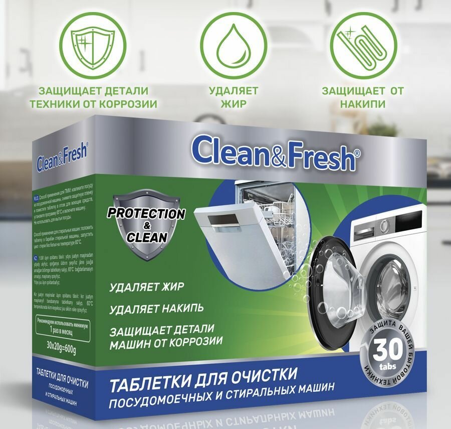 Очиститель для посудомоечных и стиральных машин Clean&Fresh 30 шт. / Таблетки для очистки посудомоечных машин