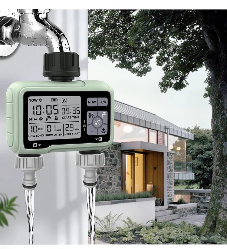 Eshico большой ЖК-дисплей с 2 выходами, бытовой уличный таймер для орошения, автоматический инструмент для полива сада с таймером интересное: