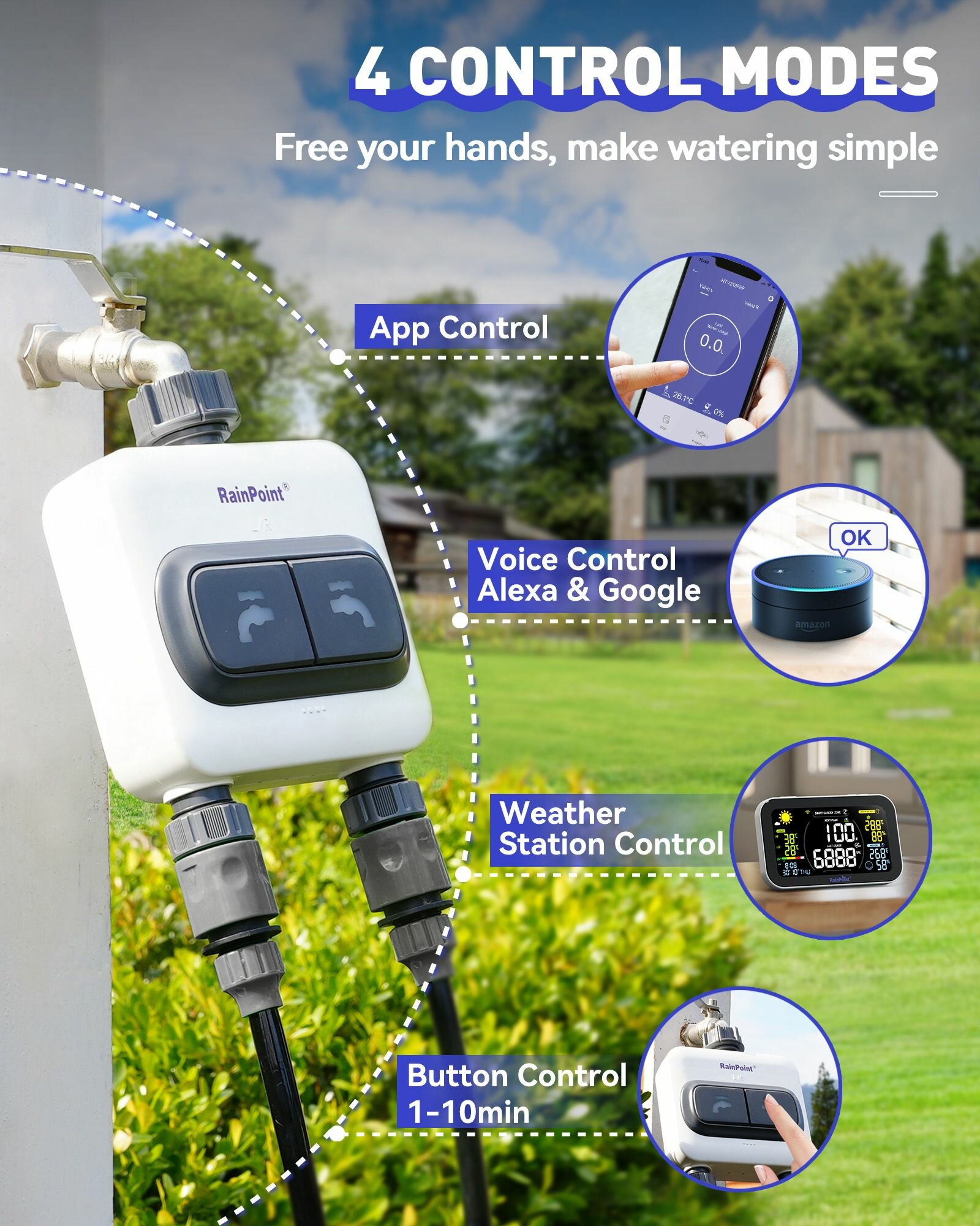 Купить Агростанция и двухканальный автополив Rainpoint с дистанционным управлением (Wi-fi хаб, агростанция, Клапан), для сада, огорода, дачи
