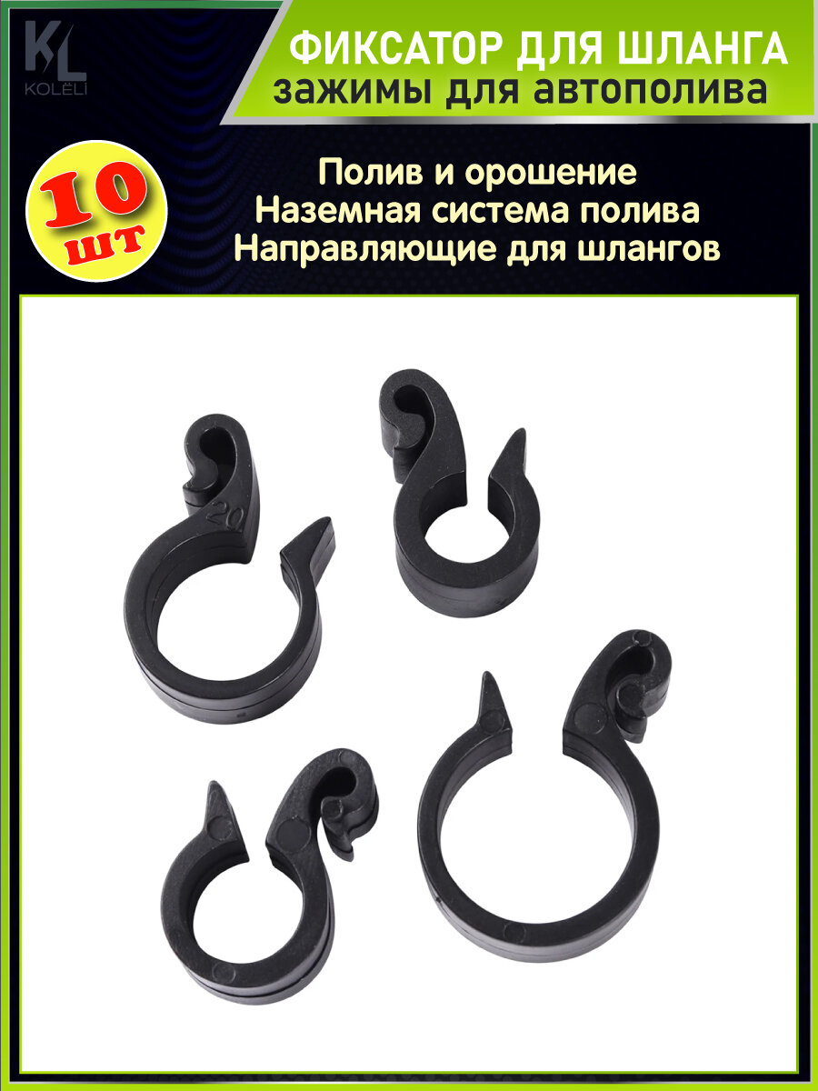 KoLeli / Держатель прижимной для шлангов и труб (D:20мм) / Крепления для системы полива / Колышки для капельных лент, черные