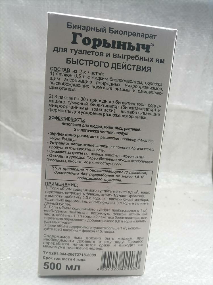 Горыныч - бинарный биопрепарат для туалетов интересное: