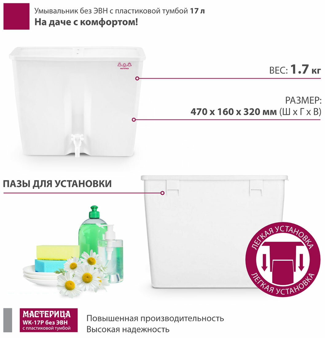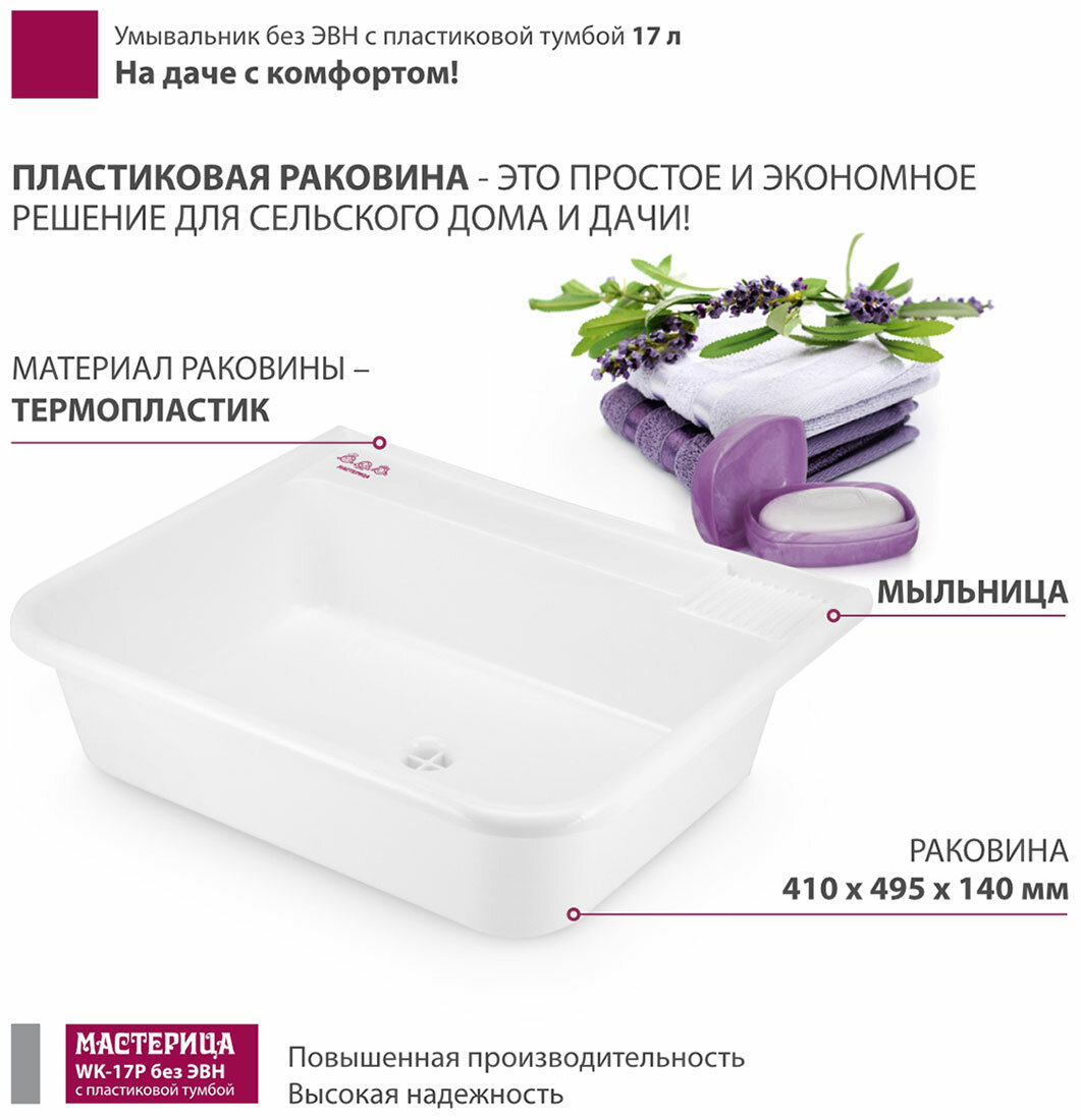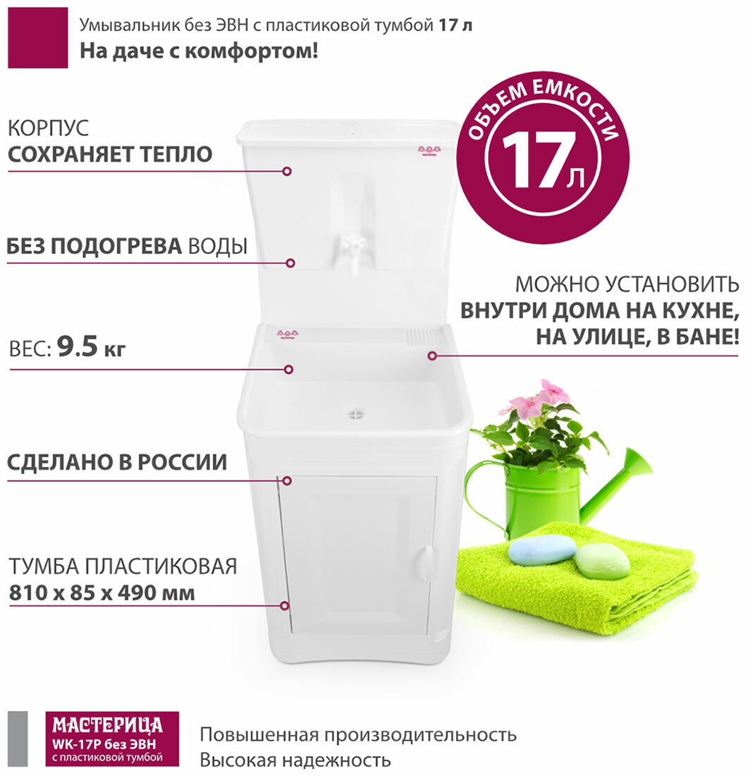 Умывальник Мастерица WK-17Р, без ЭВН с пластиковой тумбой, 17 л интересное:
