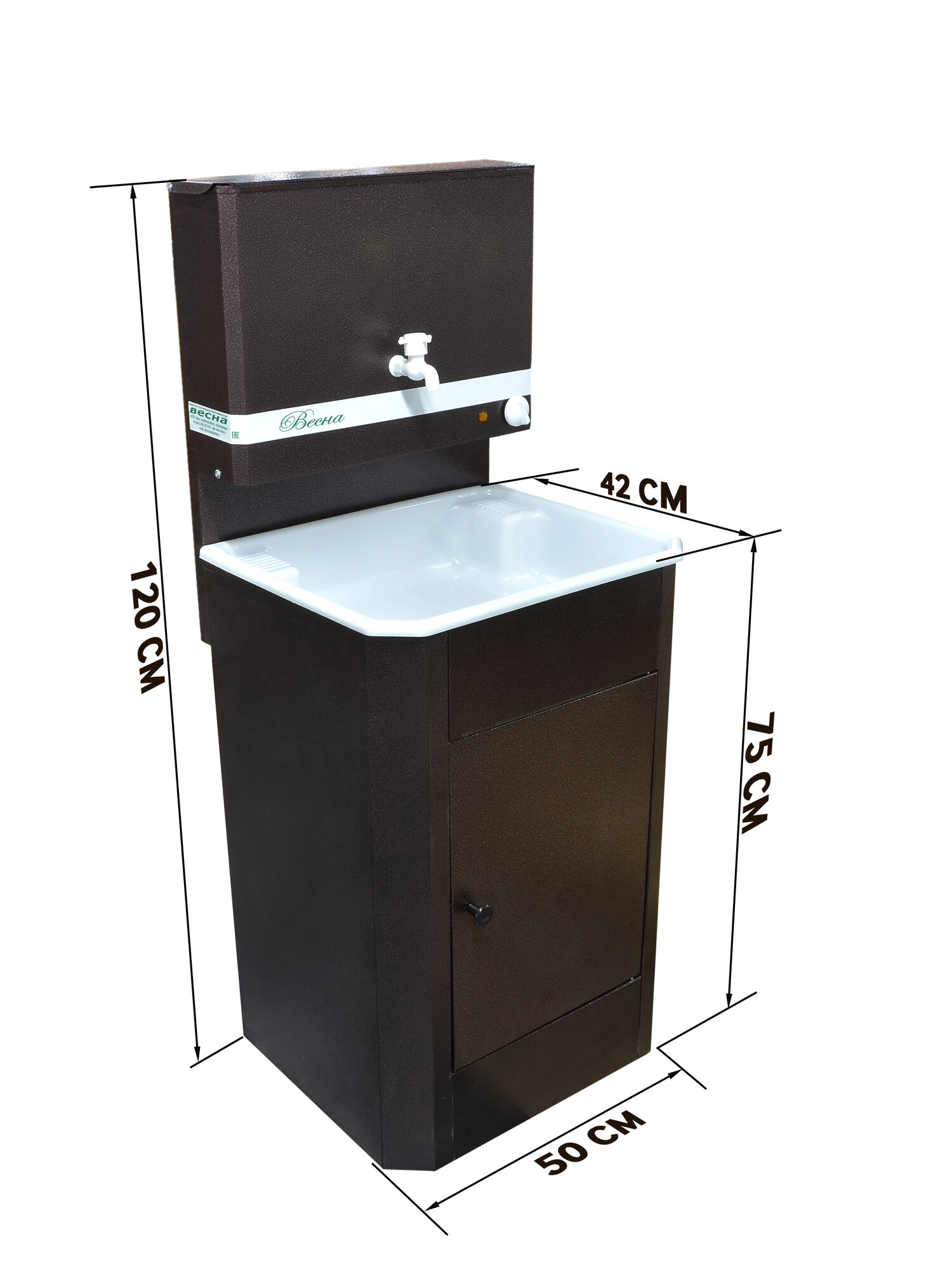 Умывальник дачный "Весна" с подогревом, тумба, пластмассовая мойка, цвет белый
