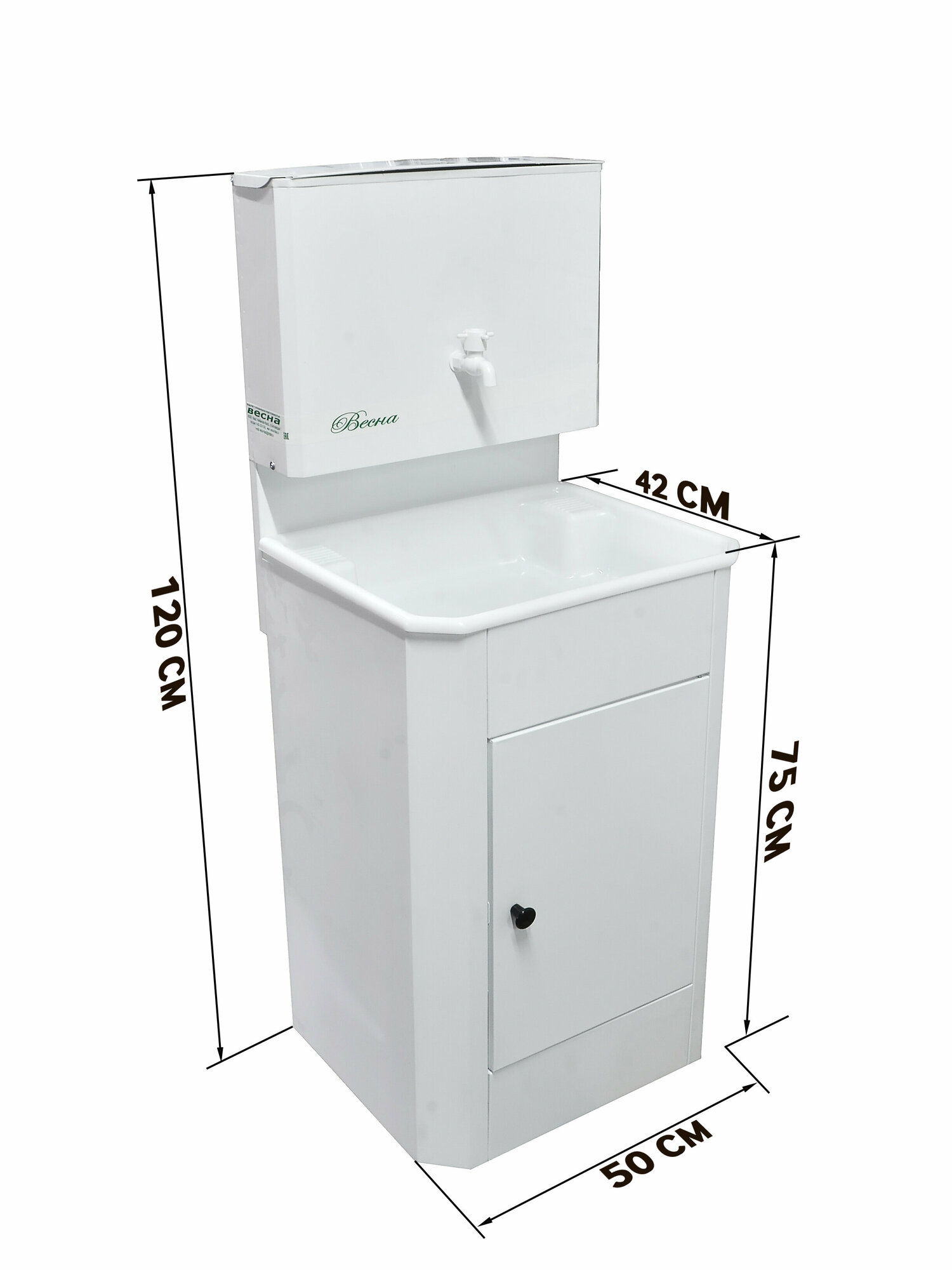 Умывальник "Весна" без ЭВН (тумба, пластмас. мойка 40*50,V-бака 17л.) белый интересное: