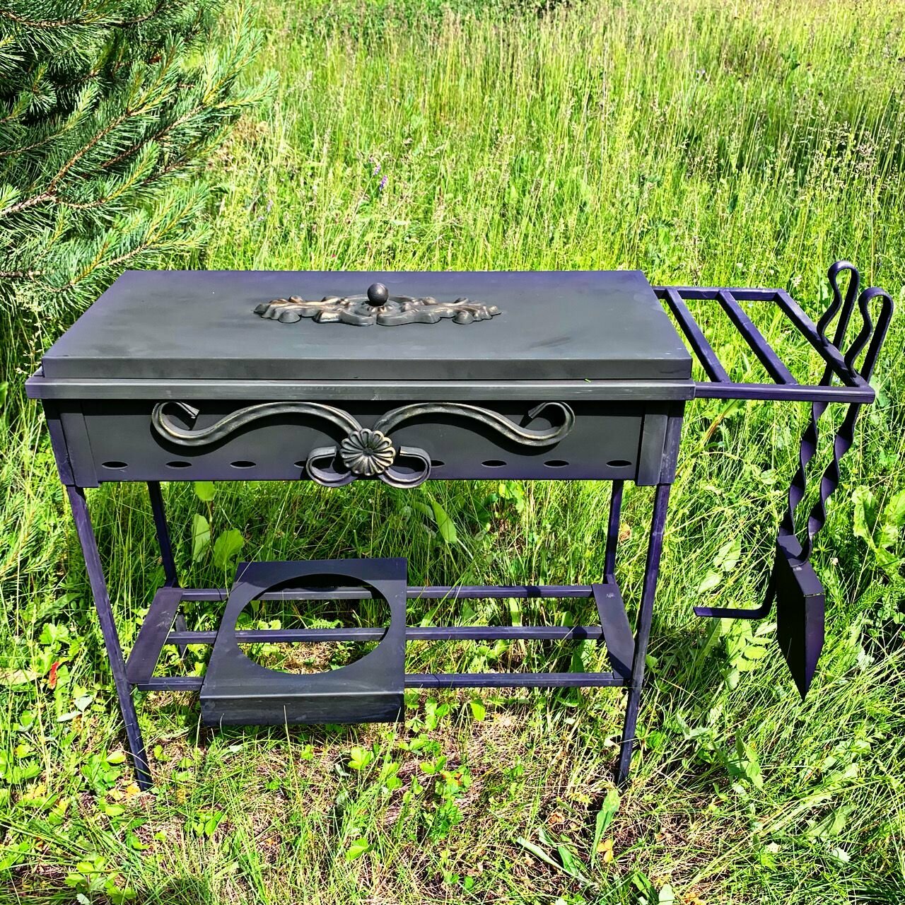 | Дополнительная информация | Комплект 1- Жаровня; 2- ножки; 3-полка для посуды; 4-нижняя полка(дровница) |