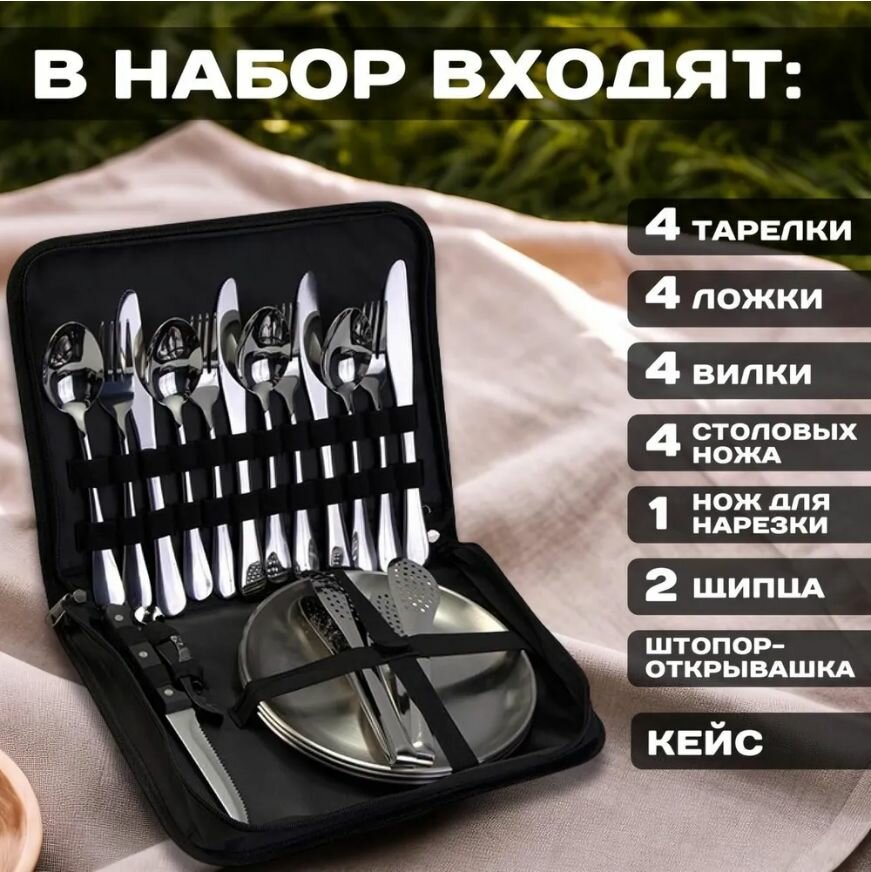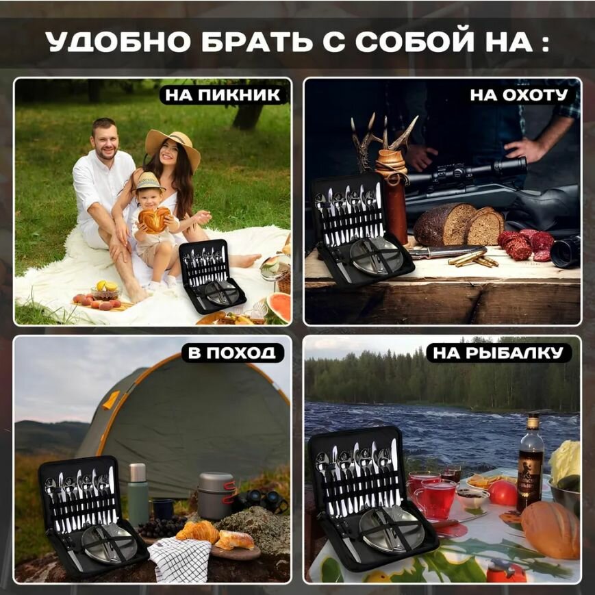 Посуда для пикника / набор посуды для туризма в сумке , на 4 персоны интересное: