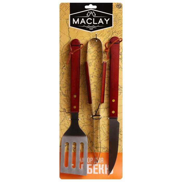 Набор для барбекю Maclay: лопатка, щипцы, нож, 35 см интересное: