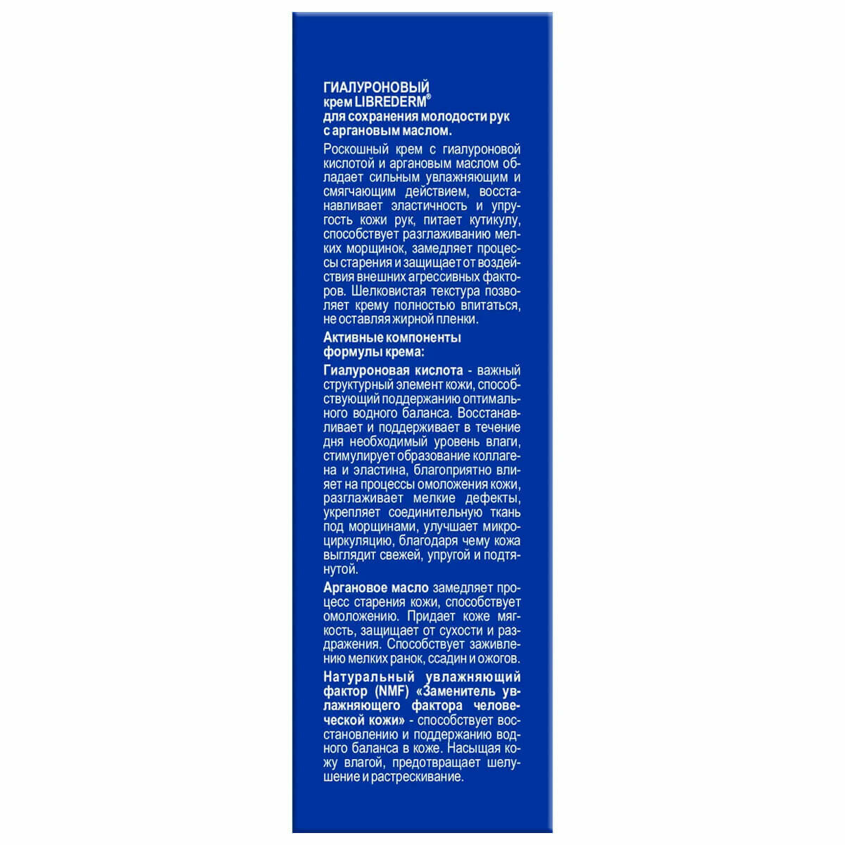 Гиалуроновый крем Librederm для сохранения молодости рук с аргановым маслом 75 мл 9404253
