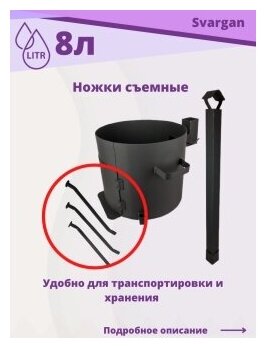 Печь для казана объемом 10 литров с ручками, съемные ножки, зольник