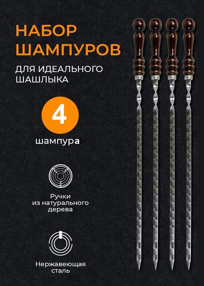 Набор шампуров 62 см 4 штуки / Шампуры из нержавеющей стали с деревянной ручкой из бука интересное: