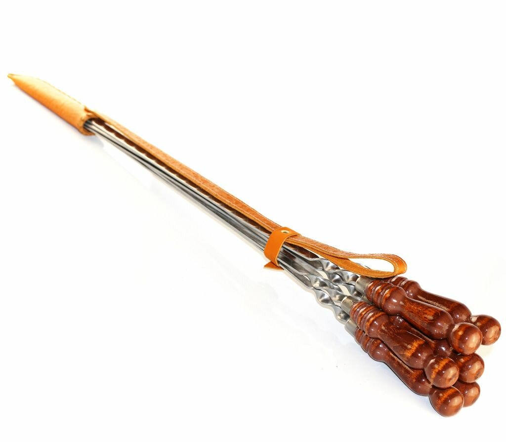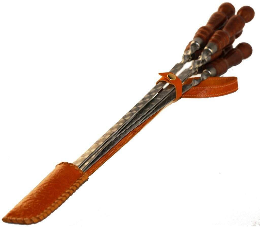 Купить Колчан кожаный - 6 профессиональных шампуров с деревянной ручкой для мяса 12 мм - 60 см