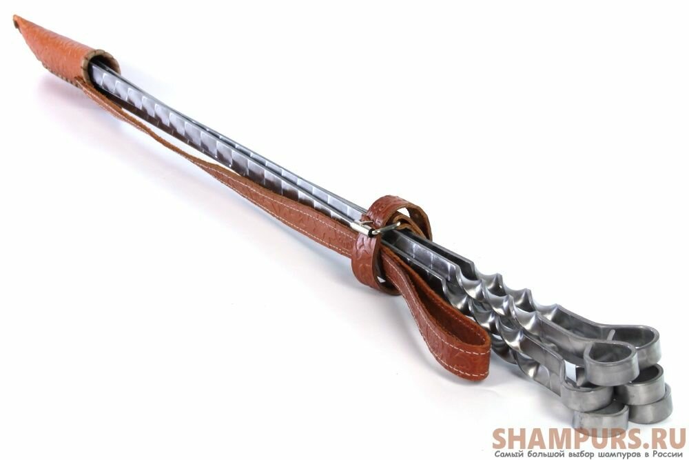 Набор шампуров с деревянной ручкой 62 см с ножом для снятия шашлыка