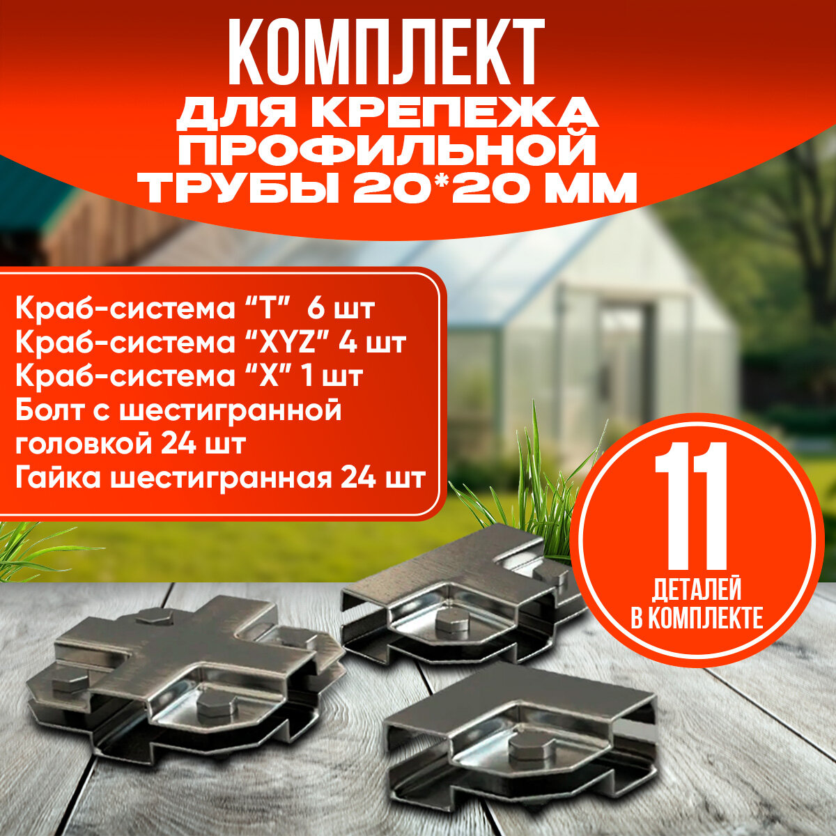 | Комплектация | краб-система Т (2 детали, профиль 20*20) - 6 шт, краб-система XYZ (2 детали, профиль 20*20) - 4 шт, краб-система X (2 детали, профиль 20*20) - 1 шт, болт с шестигранной головкой М 5*40 DIN933, цинк - 24 шт, гайка шестигранная DIN934 M 5, цинк - 24 шт |