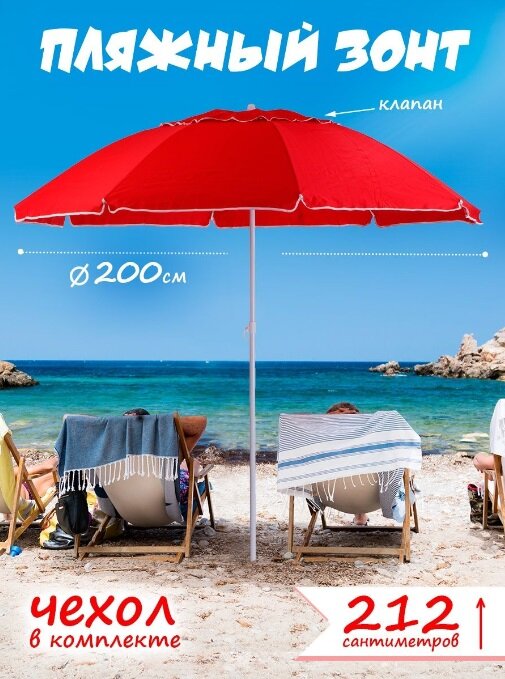 СохранитьПляжный зонт, 2 м, с клапаном премиум Премиум Oxford (красный) в чехле 200/8 kN интересное: