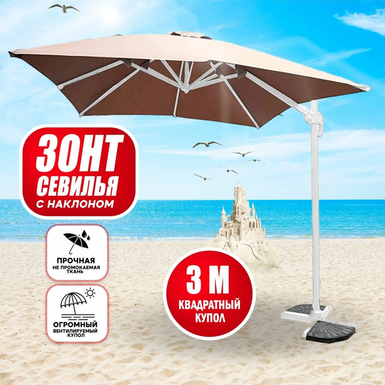 Зонт Gardeck Севилья 3х3 м Песочный Размеры: Высота 2650мм Глубина 3000мм Ширина 3000мм