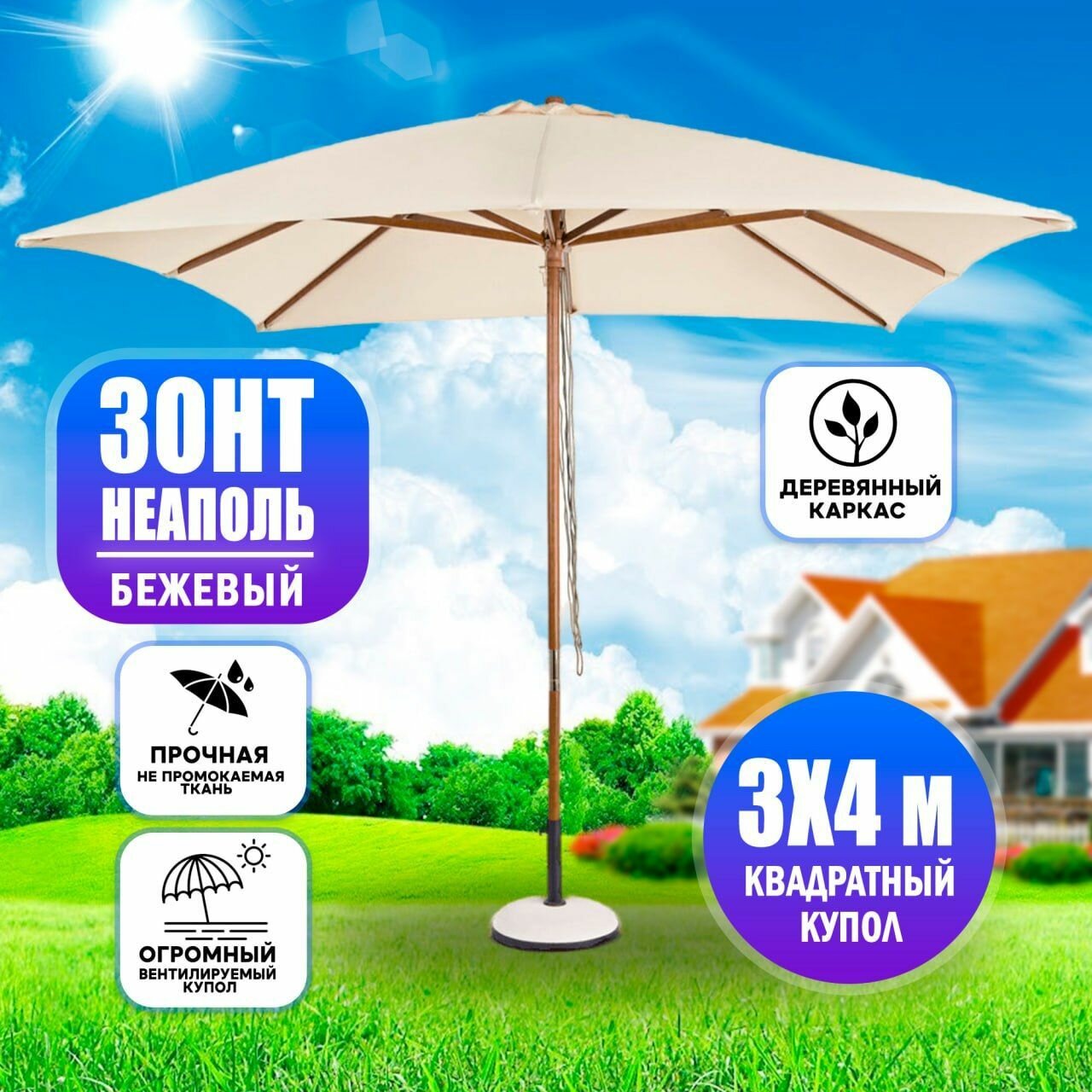 Зонт Bizzotto Неаполь 3х4 м Бежевый интересное: