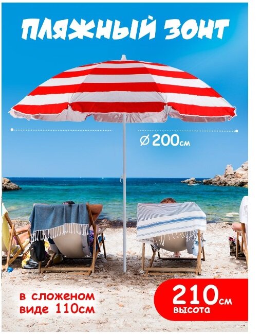 Пляжный зонт, 2м, плащевка (красный/принт "полоса") в пакете 200/8LR-К/200/8K интересное: