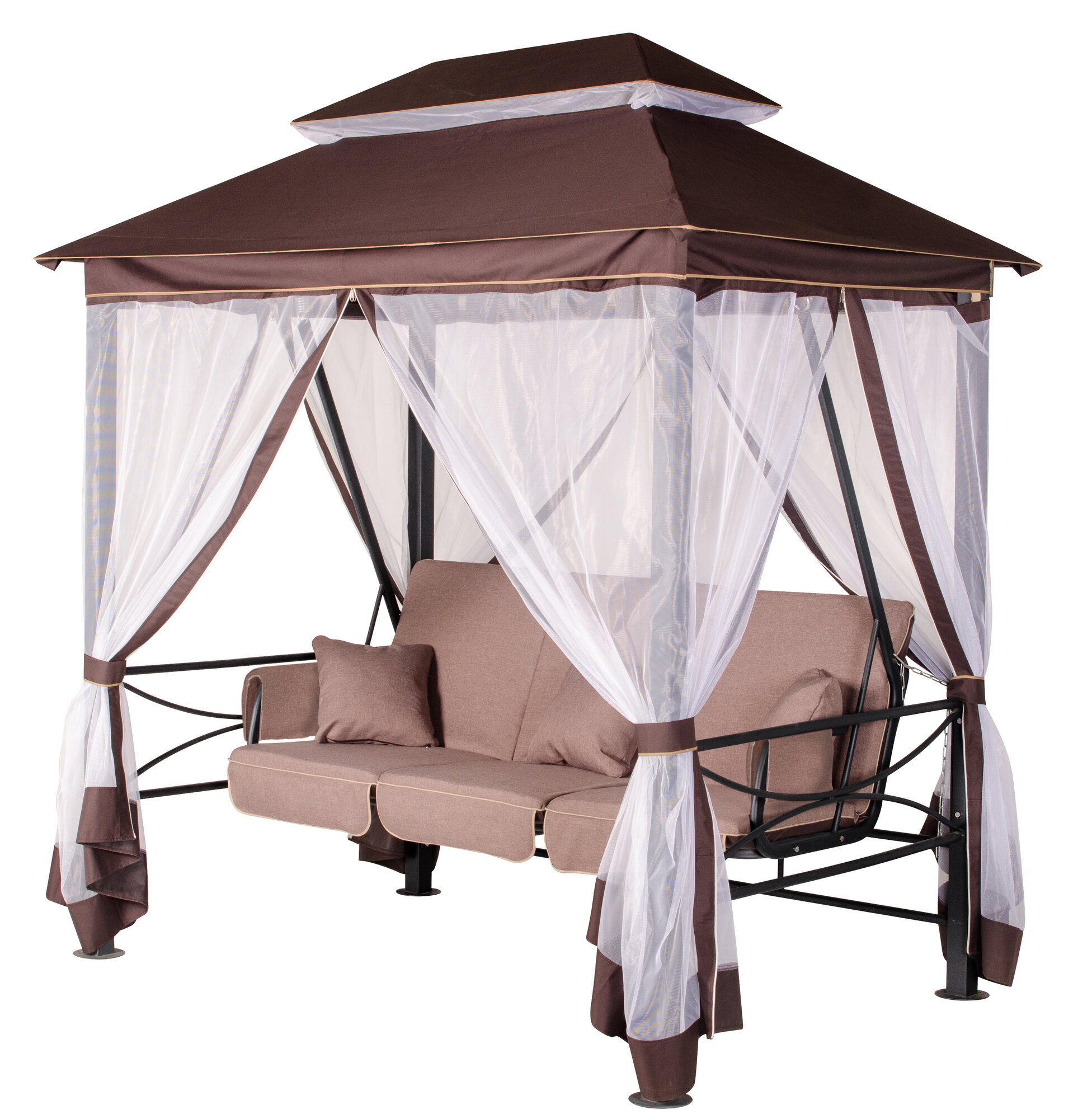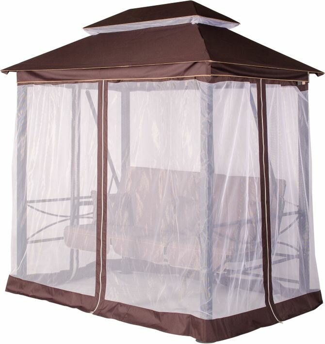 Качели садовые 4-х местные Ольса Шатер ткань панама каркас коричневый, ткань полоска бежево-коричневная