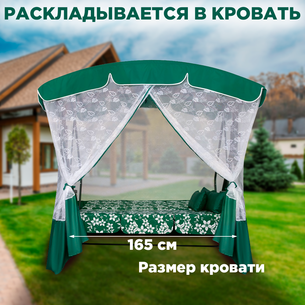 Садовые качели элегант премиум для дачи уличные 3-местные подвесные с тентом и москитной сеткой зеленый интересное: