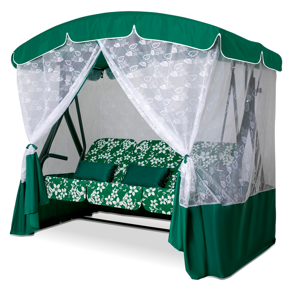 Купить Садовые качели элегант премиум для дачи уличные 3-местные подвесные с тентом и москитной сеткой зеленый