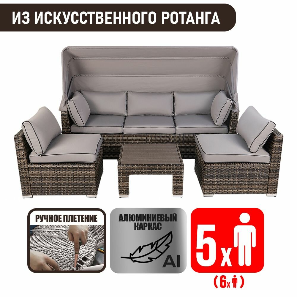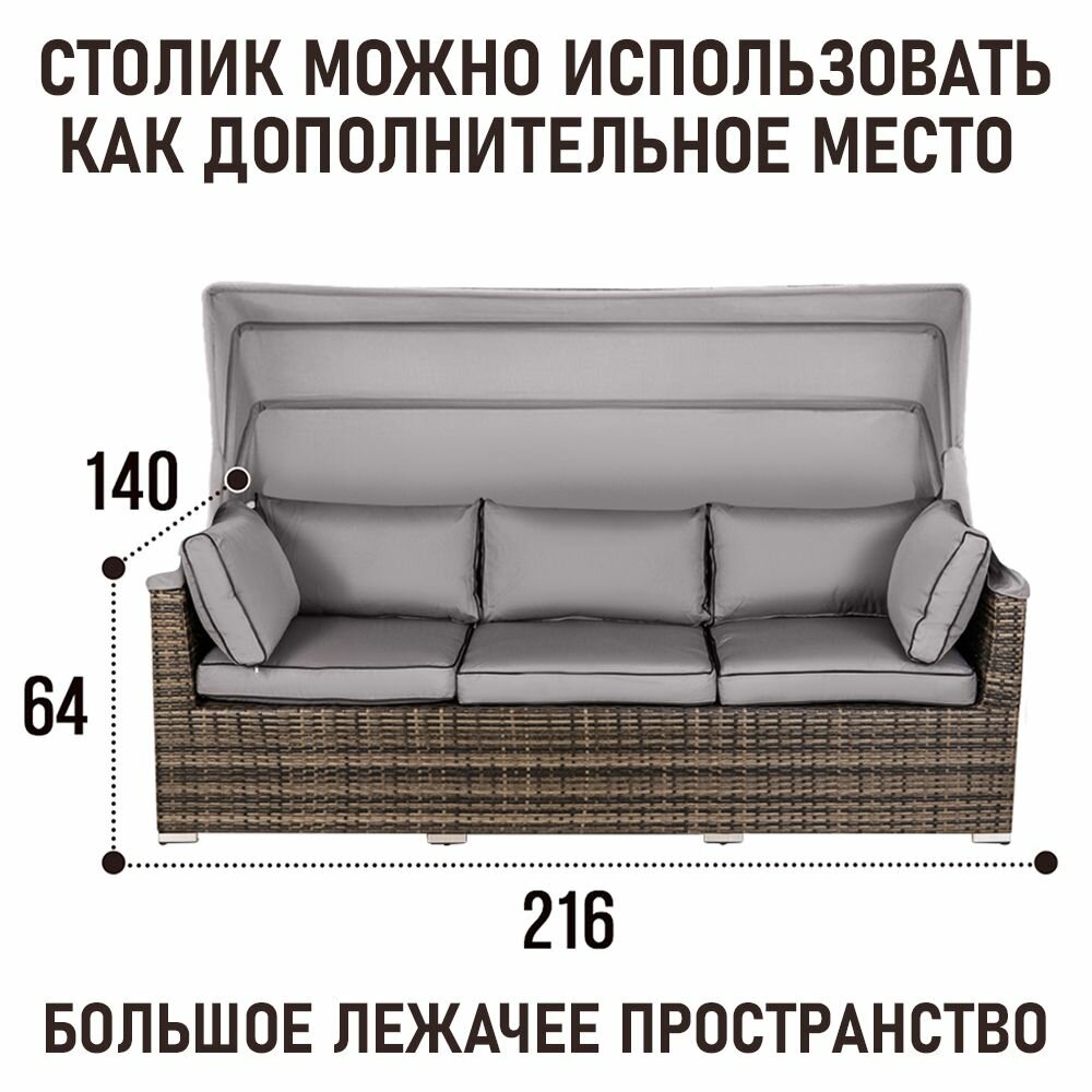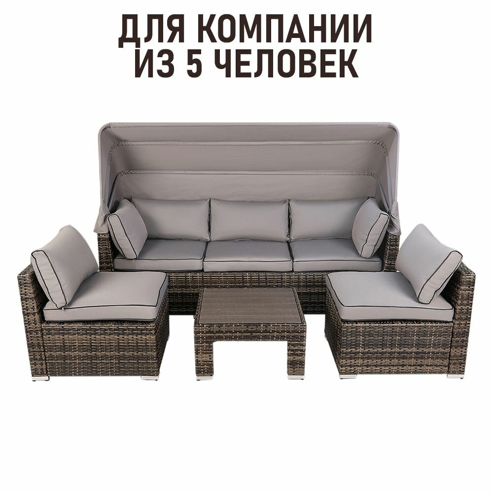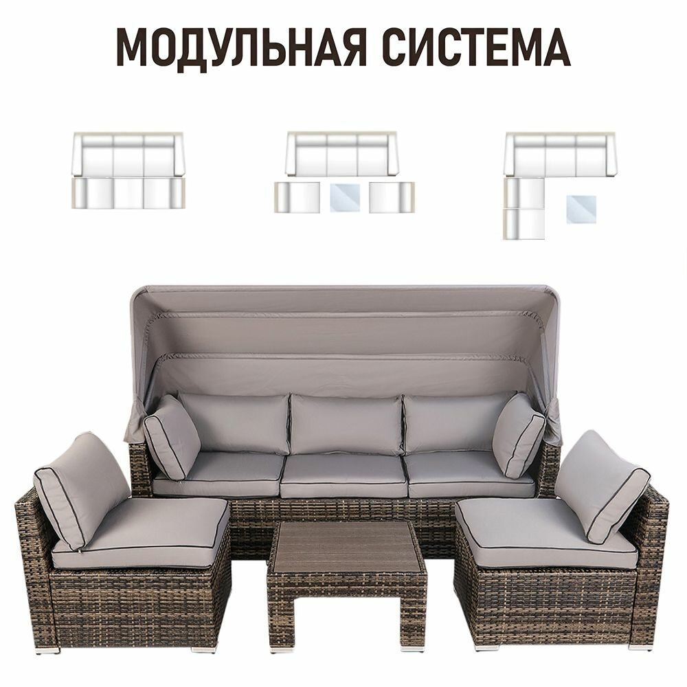 Садовый комплект-трансформер Тет-а-тет из ротанга с тентом, капучино. Стальной каркас