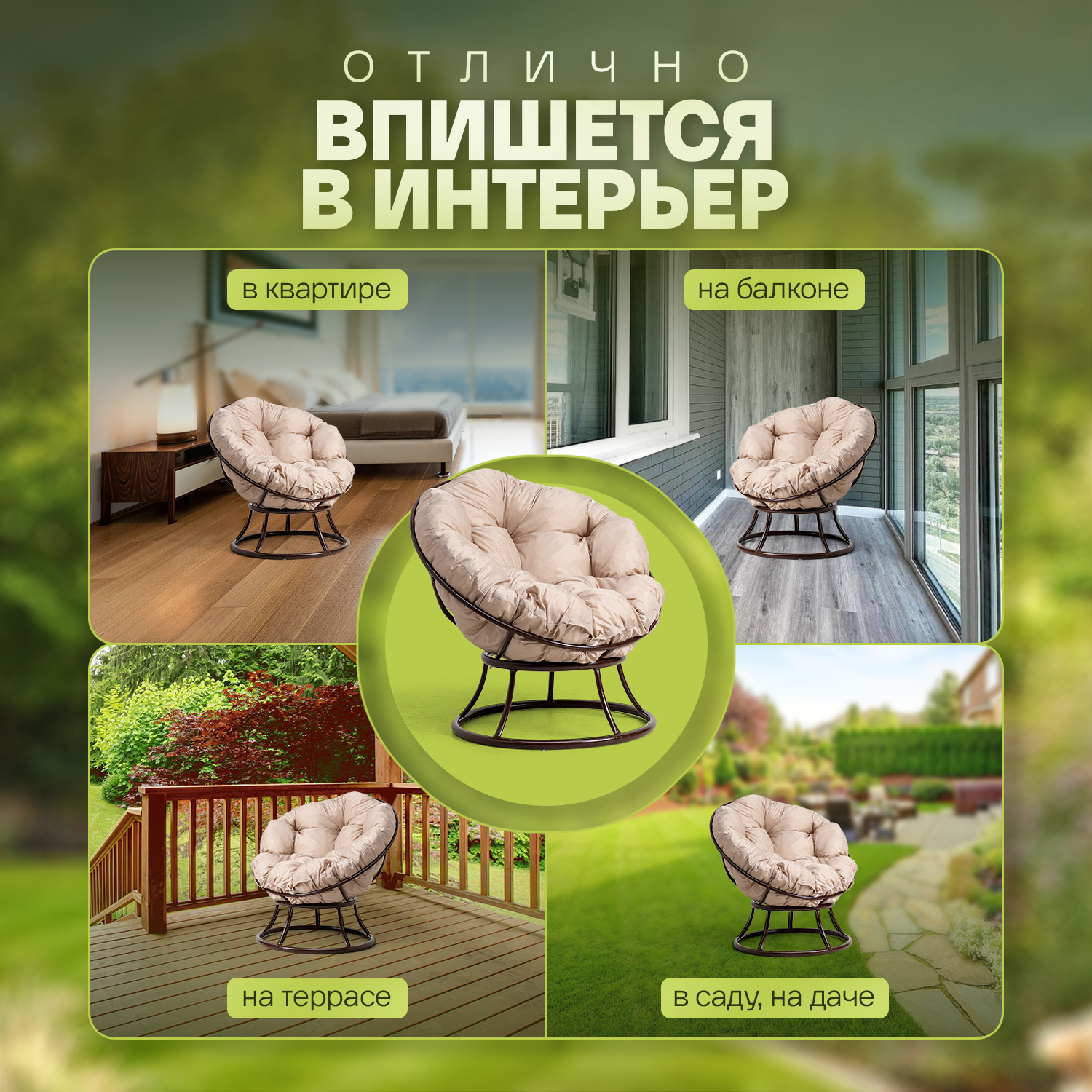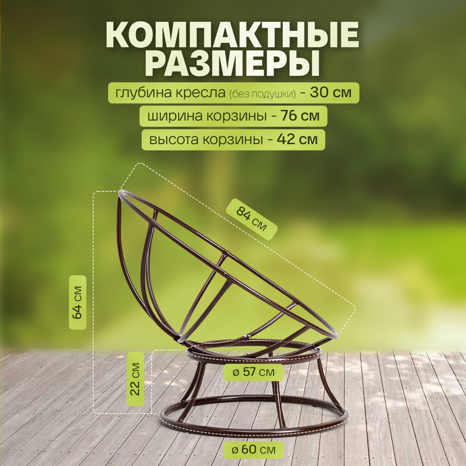 СохранитьКресло садовое Папасан без ротанга на балкон и для дачи, Венге с бежевой подушкой интересное: