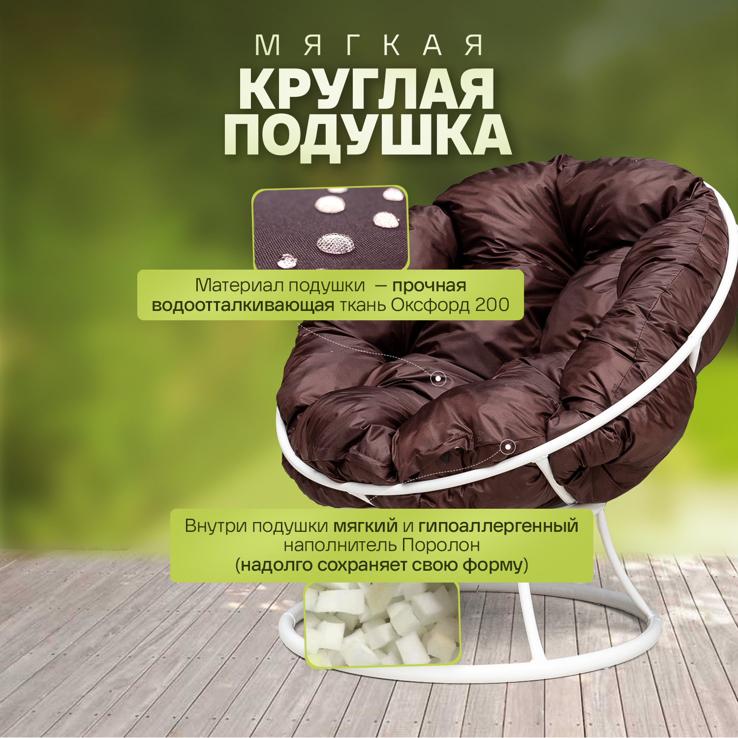 Купить Кресло садовое Папасан без ротанга на балкон и для дачи, Белый с коричневой подушкой
