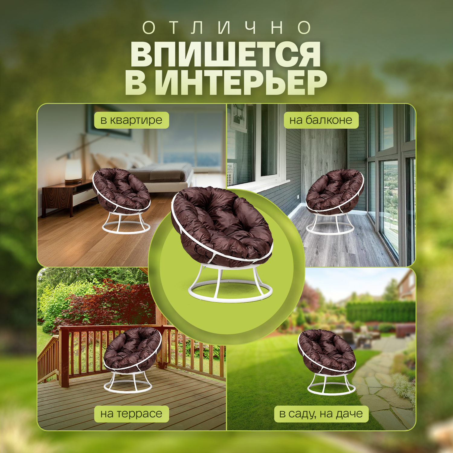 СохранитьКресло садовое Папасан без ротанга на балкон и для дачи, Белый с коричневой подушкой интересное: