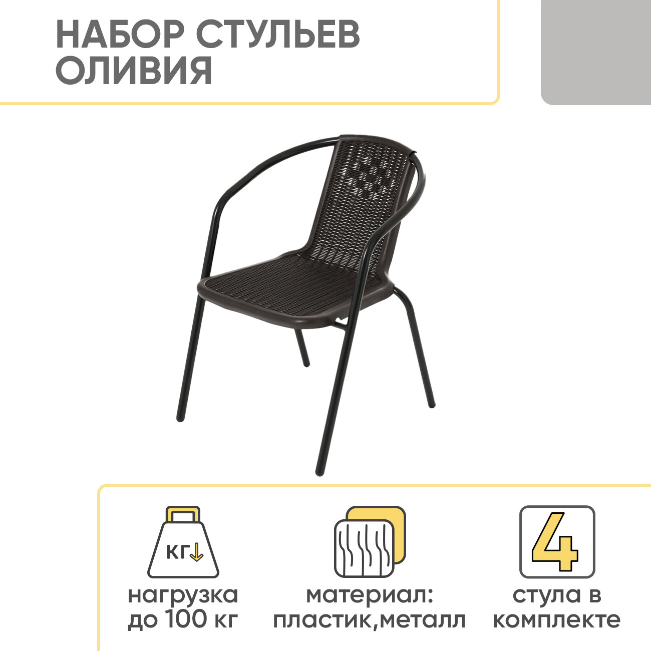Стулья садовые пластиковые 56х55х72 см, набор 4 шт., Тёмно-коричневый интересное: