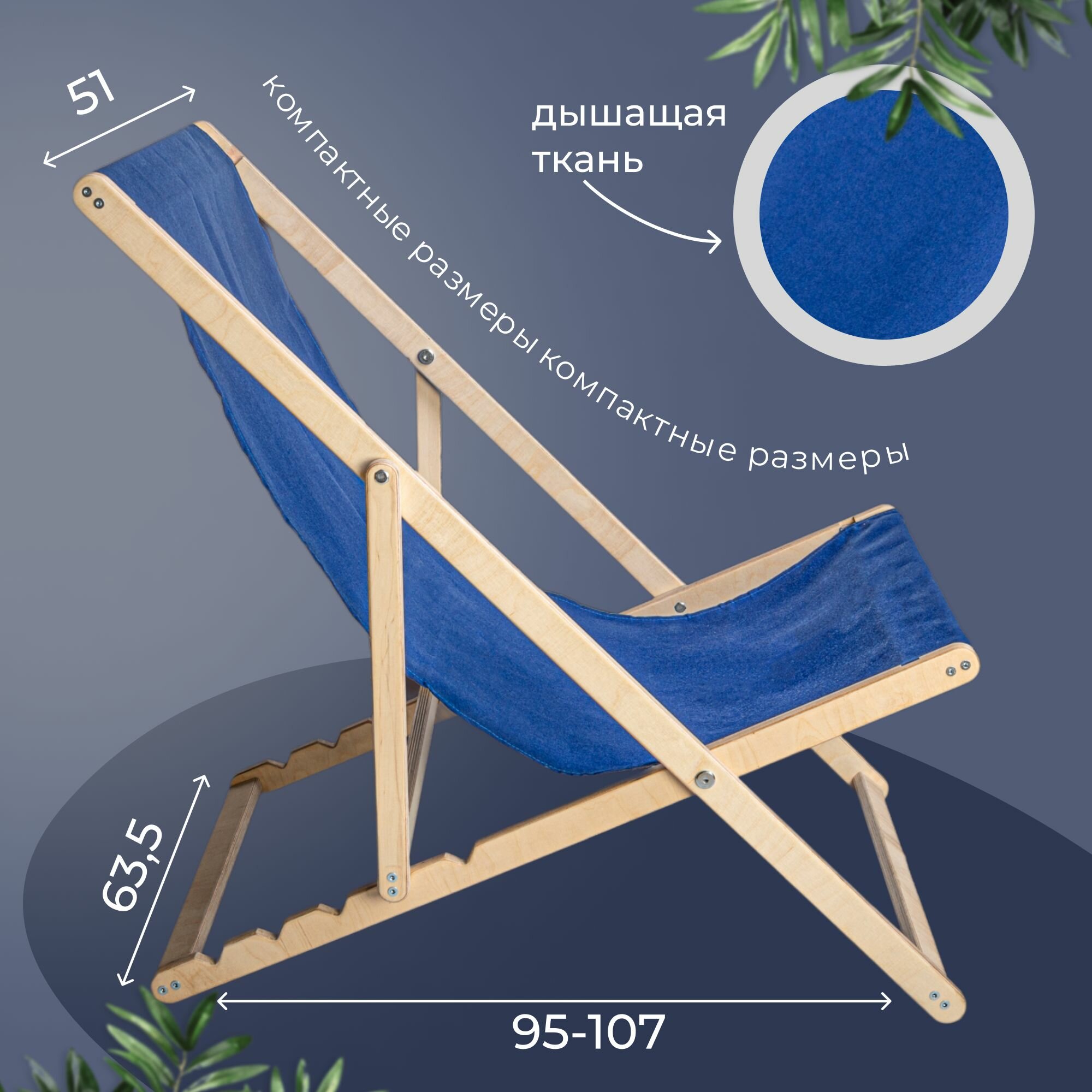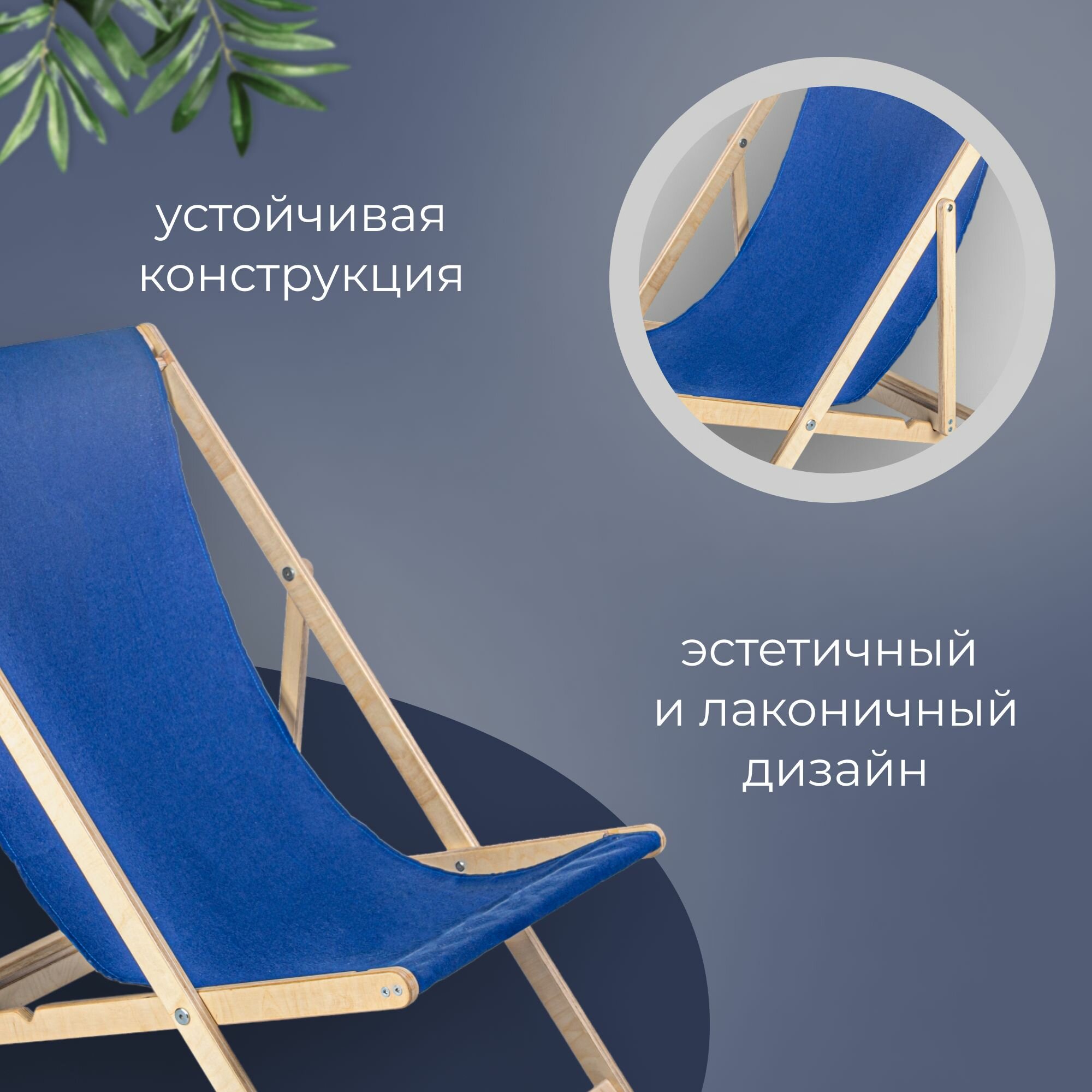 Кресло-шезлонг "Березка" без шлифовки с тёмно-синей тканью складной для дома и для дачи