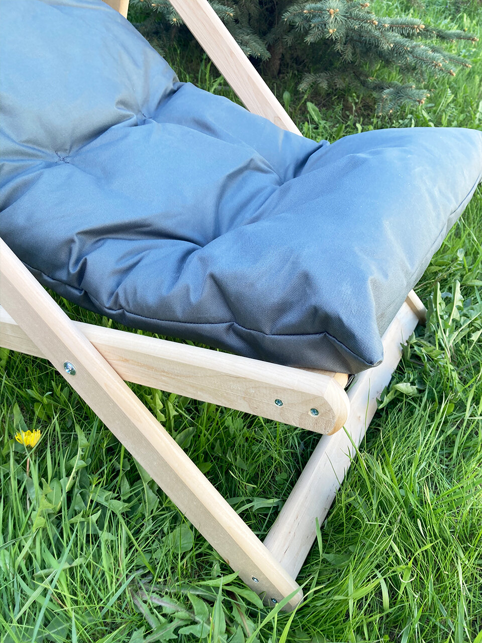Кресло-шезлонг складное деревянный/тканевый, цвет сидушки серый