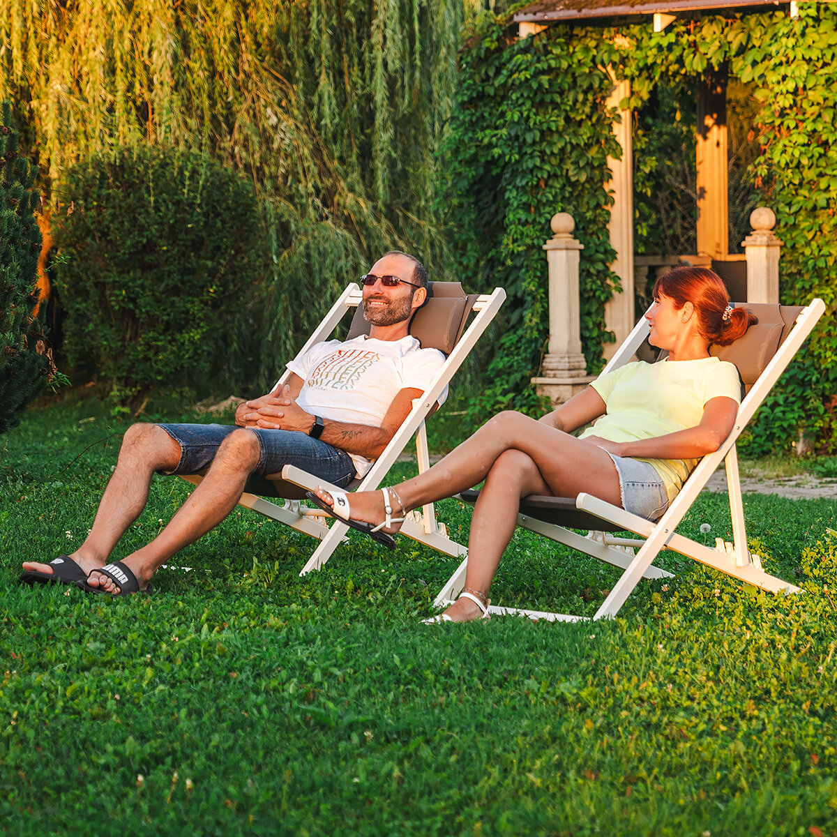 Шезлонг садовый для дачи складной алюминиевый Маре. Комплект 2 шт для дома
