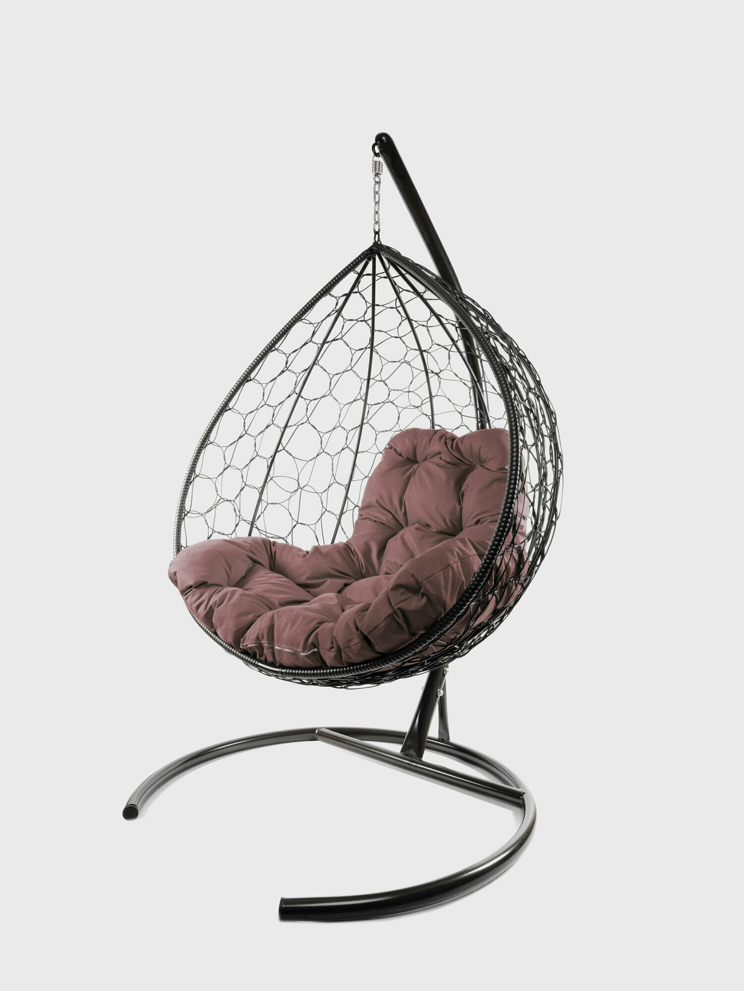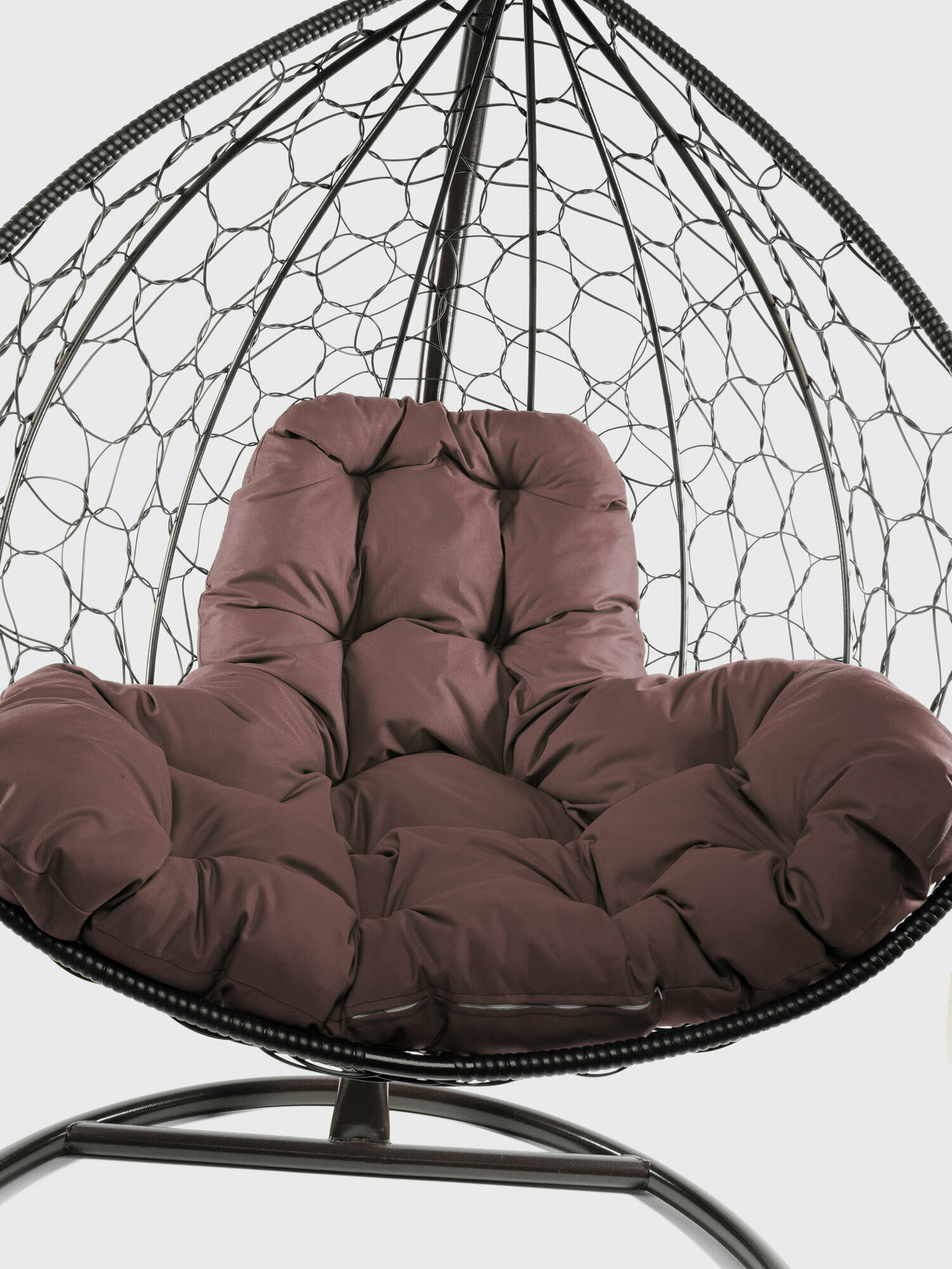 Подвесное кресло ротанг чёрное, коричневая подушка