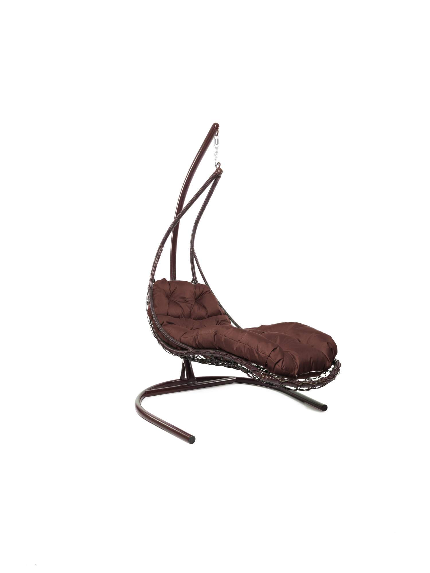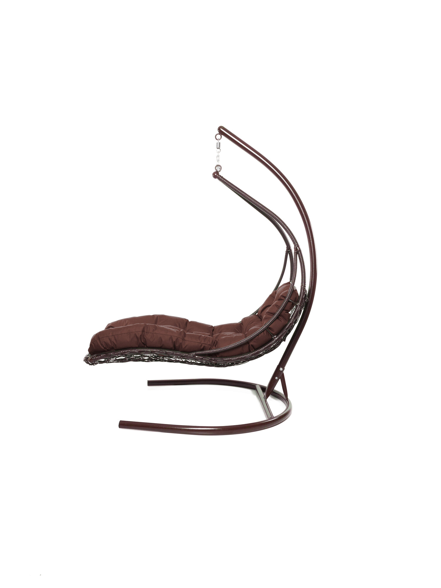 Подвесное кресло лежачее, с ротангом коричневое, коричневая подушка