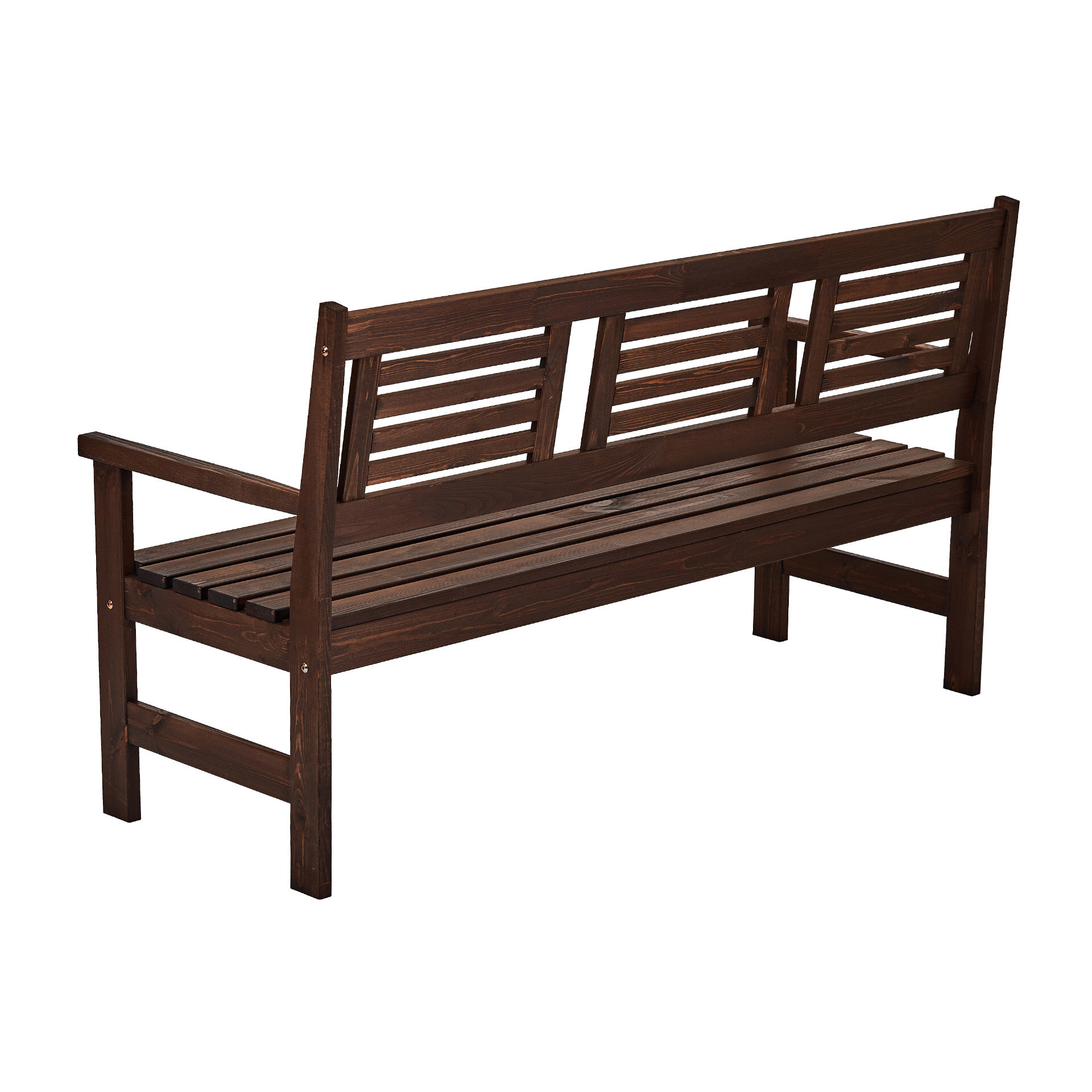 Скамейка садовая Классика с деревянными спинкой и сиденьем без покраски, лавочка для дачи с металлическим каркасом