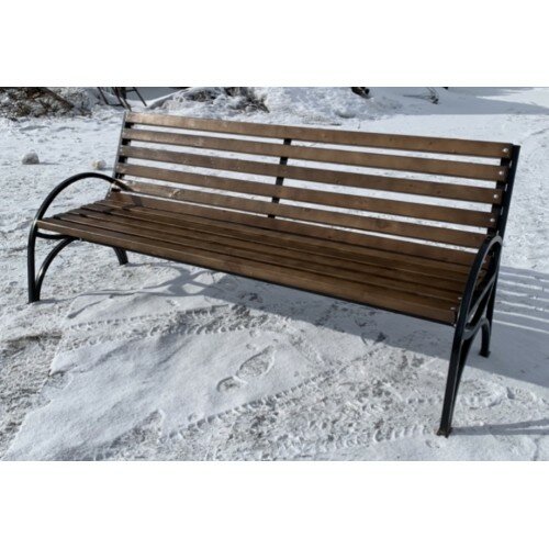 Скамейка садовая Классика с деревянными спинкой и сиденьем без покраски, лавочка для дачи с металлическим каркасом