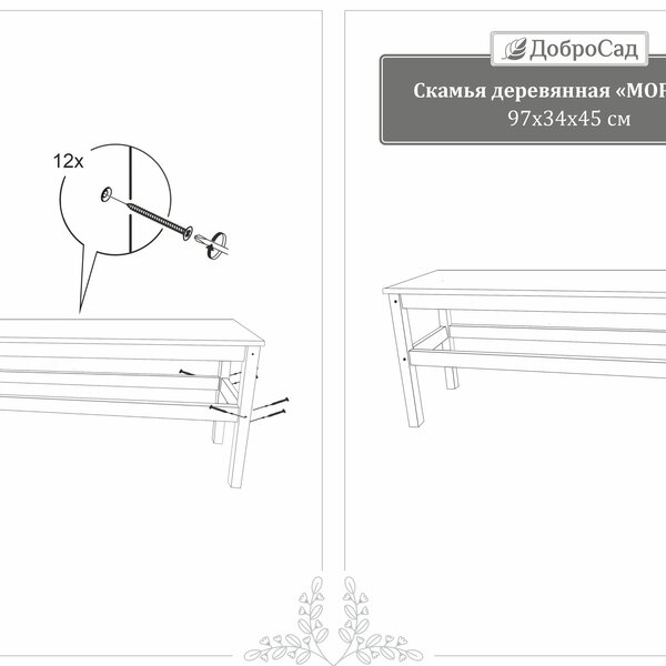 Скамья деревянная 97*34*45см «морфей» ДоброСад интересное: