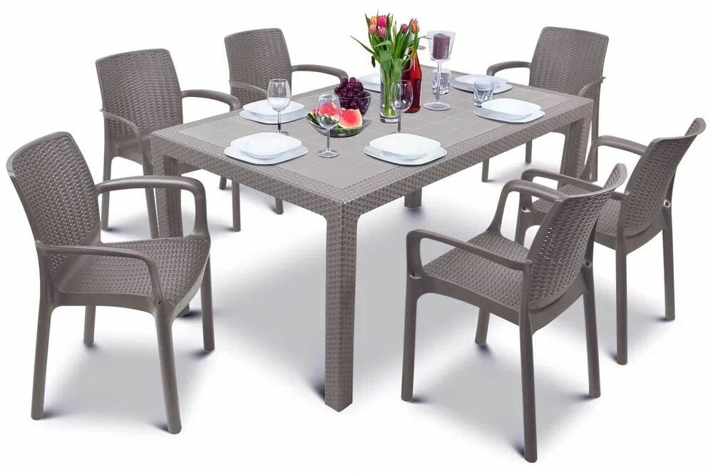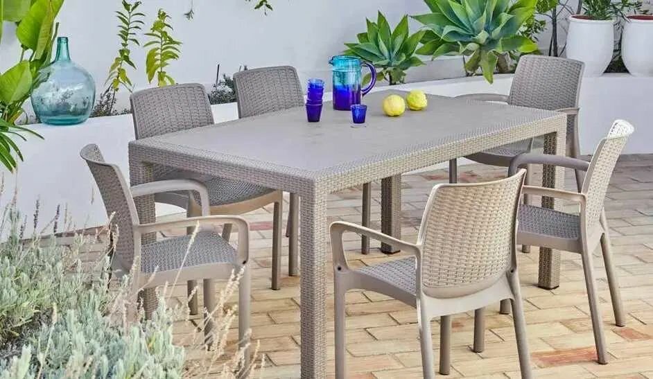 Садовая мебель. Набор RODOS, стол большой прямоугольный 160х95х75, 6 стульев, цвет бежевый интересное: