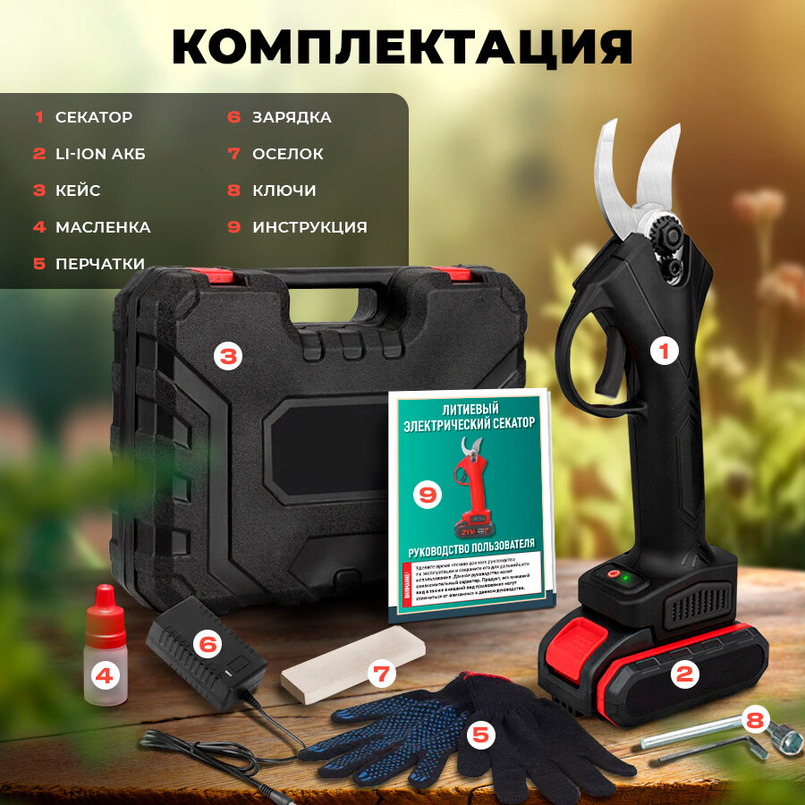 Ручной садовый секатор аккумуляторный Wiekk 1 АКБ, электрический сучкорез для обрезки деревьев (перчатки в подарок) интересное: