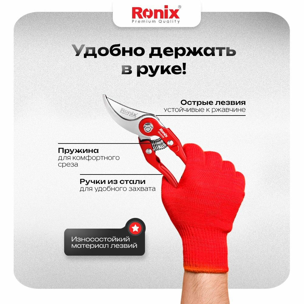 Секатор садовый для роз и кустарников Ronix длина 200 мм , материал японская сталь, с функцией плокировки лезвий