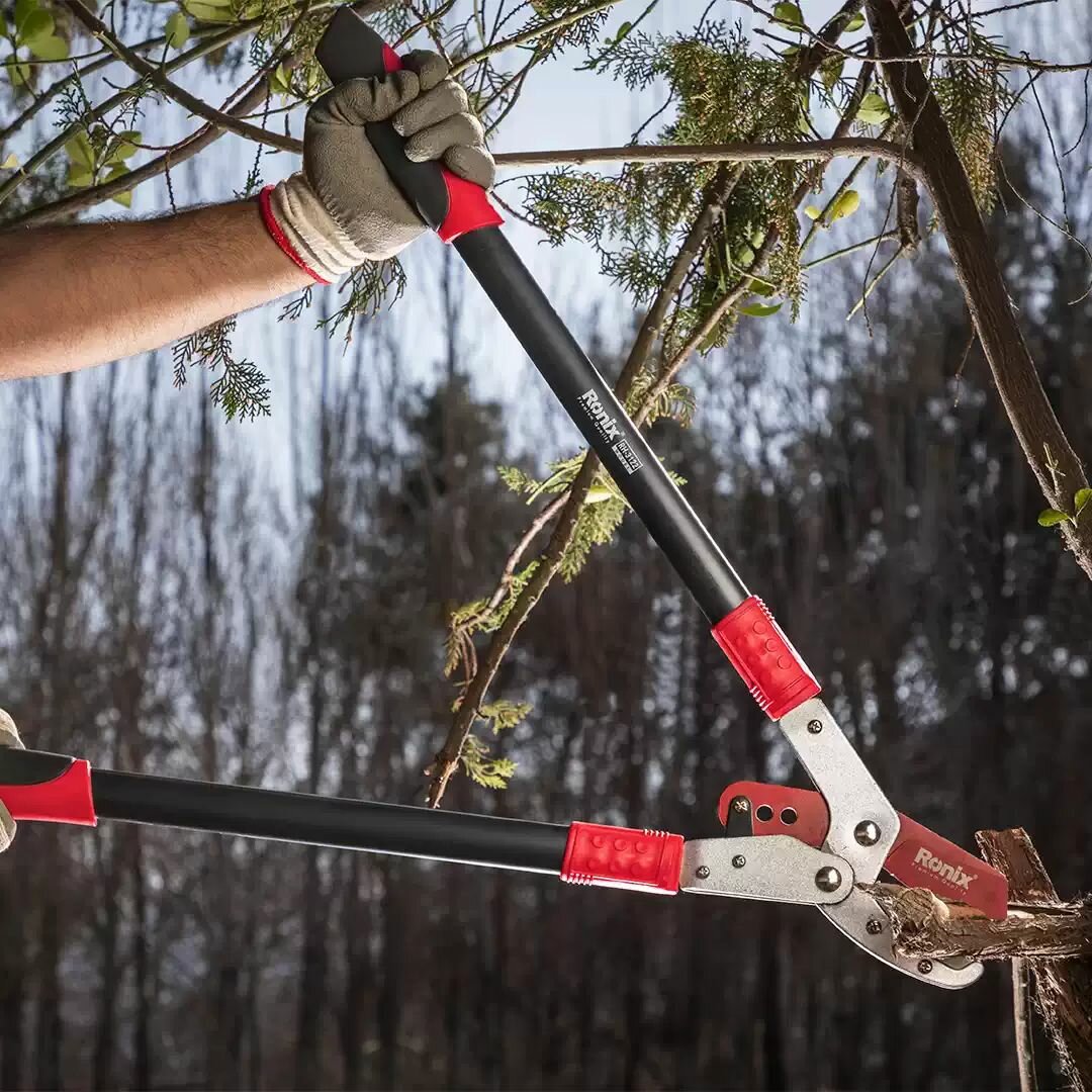 Телескопические сучкорез Ronix длина штанги 670-940 мм, стальная кромка, диаметр реза 25 мм