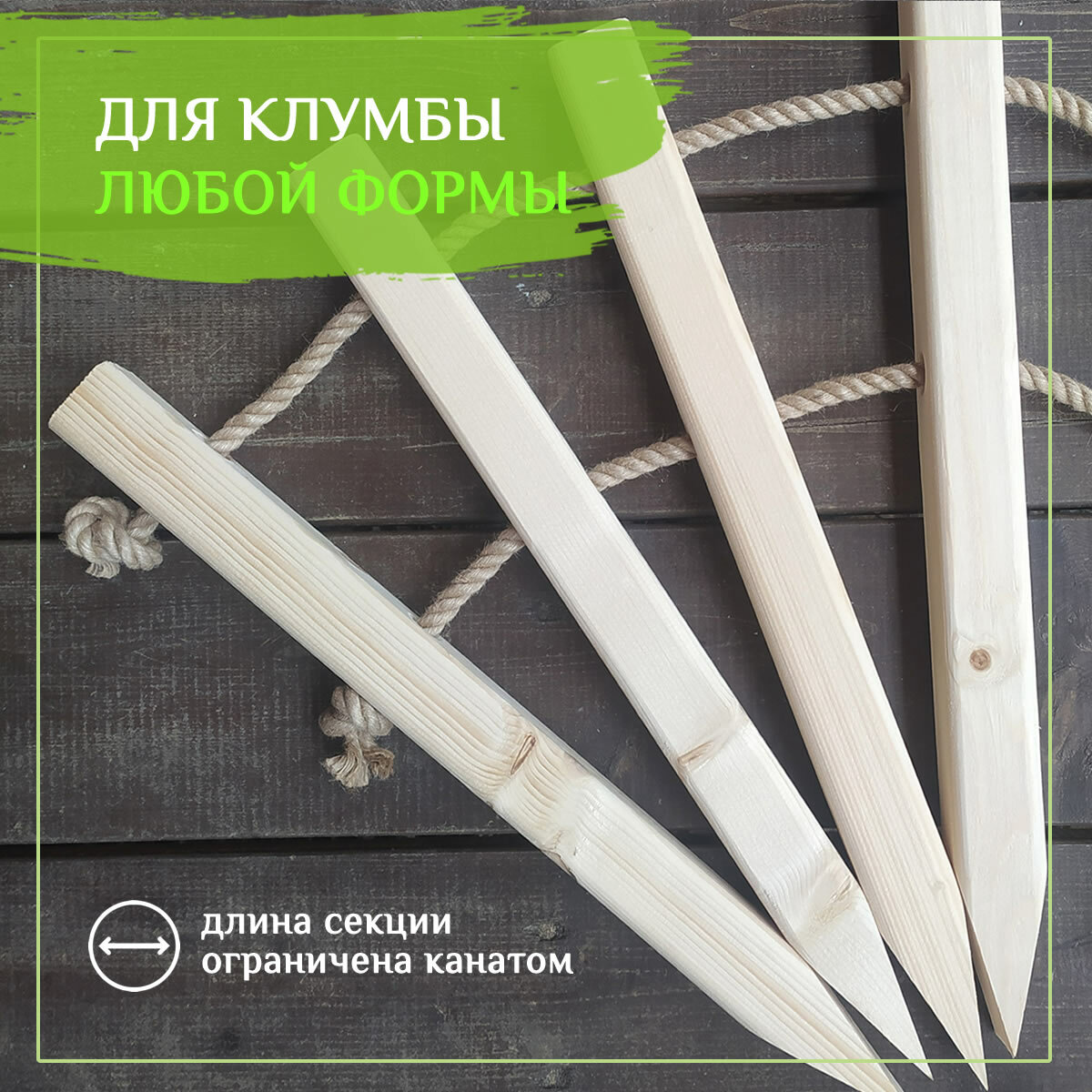 Купить Столбики для декоративного забора. Колышки деревянные 4 шт. Канат джутовый 4 метра. Заборчик ограждение для клумб, цветников и дорожек Восьмой Слон.